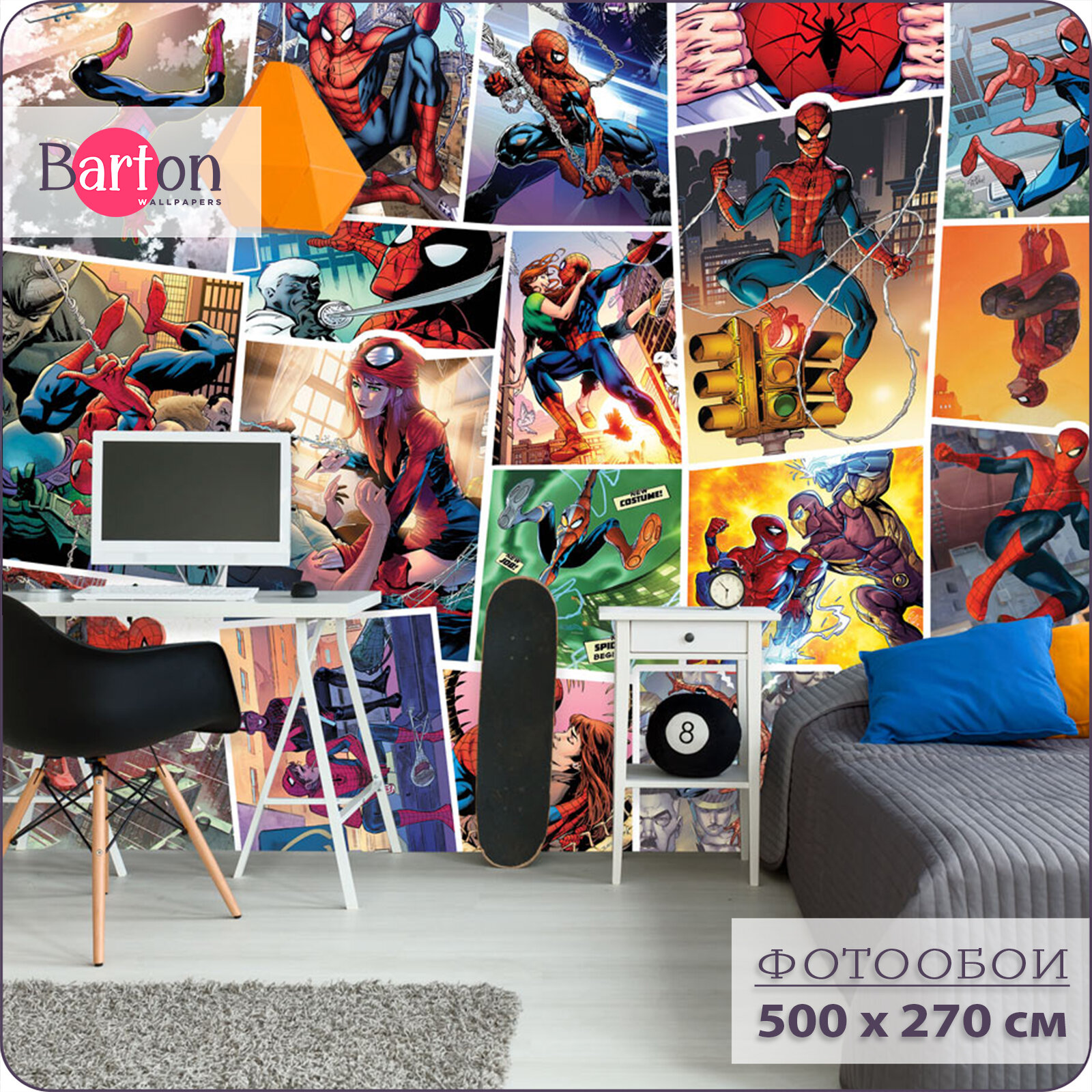 Фотообои на стену флизелиновые 3d Детские Комиксы Супергерои Человек Паук 500х270 см Bartonwall K032 информация: