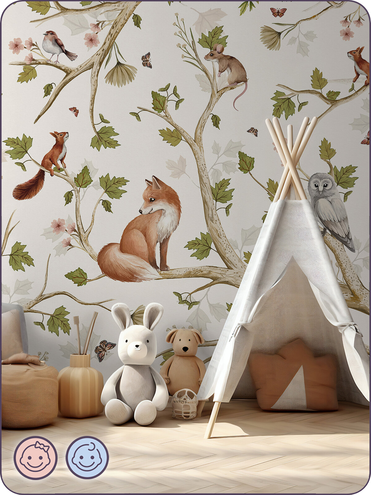 Фотообои на стену флизелиновые 3d Детские Животные Лес 200х270 см Bartonwall K297-Z 3 791 ₽