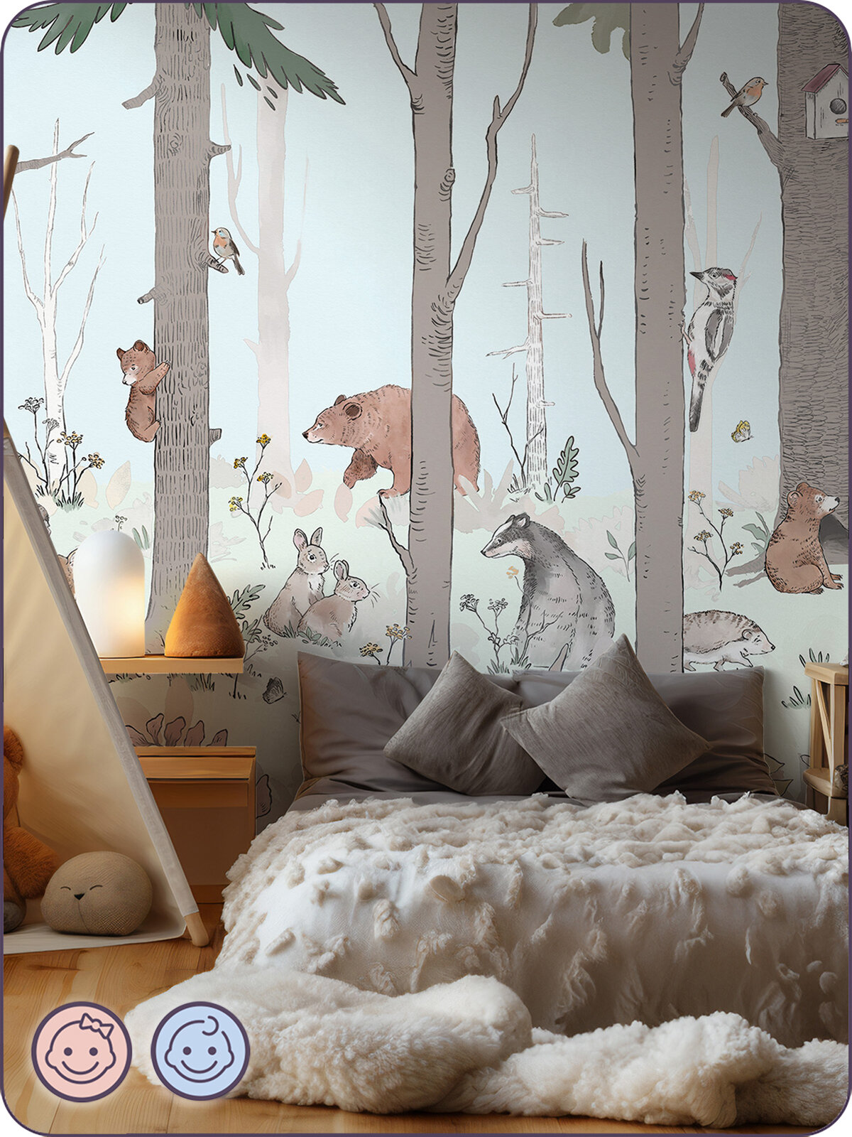 Фотообои на стену флизелиновые 3d Детские Животные Лес 200х270 см Bartonwall K297-P 4 600 ₽
