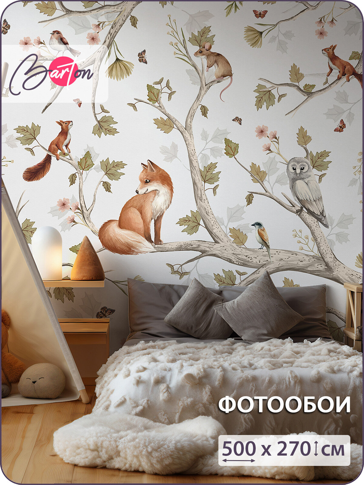 Отзывы на Фотообои на стену флизелиновые 3d Детские Сказочный лес Животные 500х270 см Bartonwall K323_G