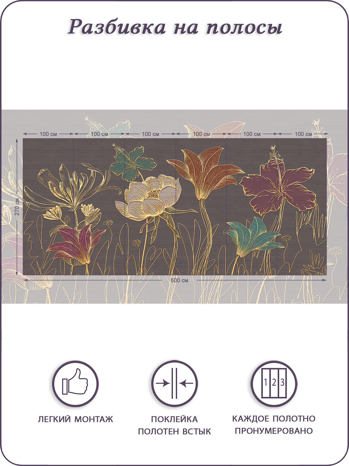 Фотообои на стену флизелиновые 3d Цветы 600х270 см Bartonwall M203-BR информация: