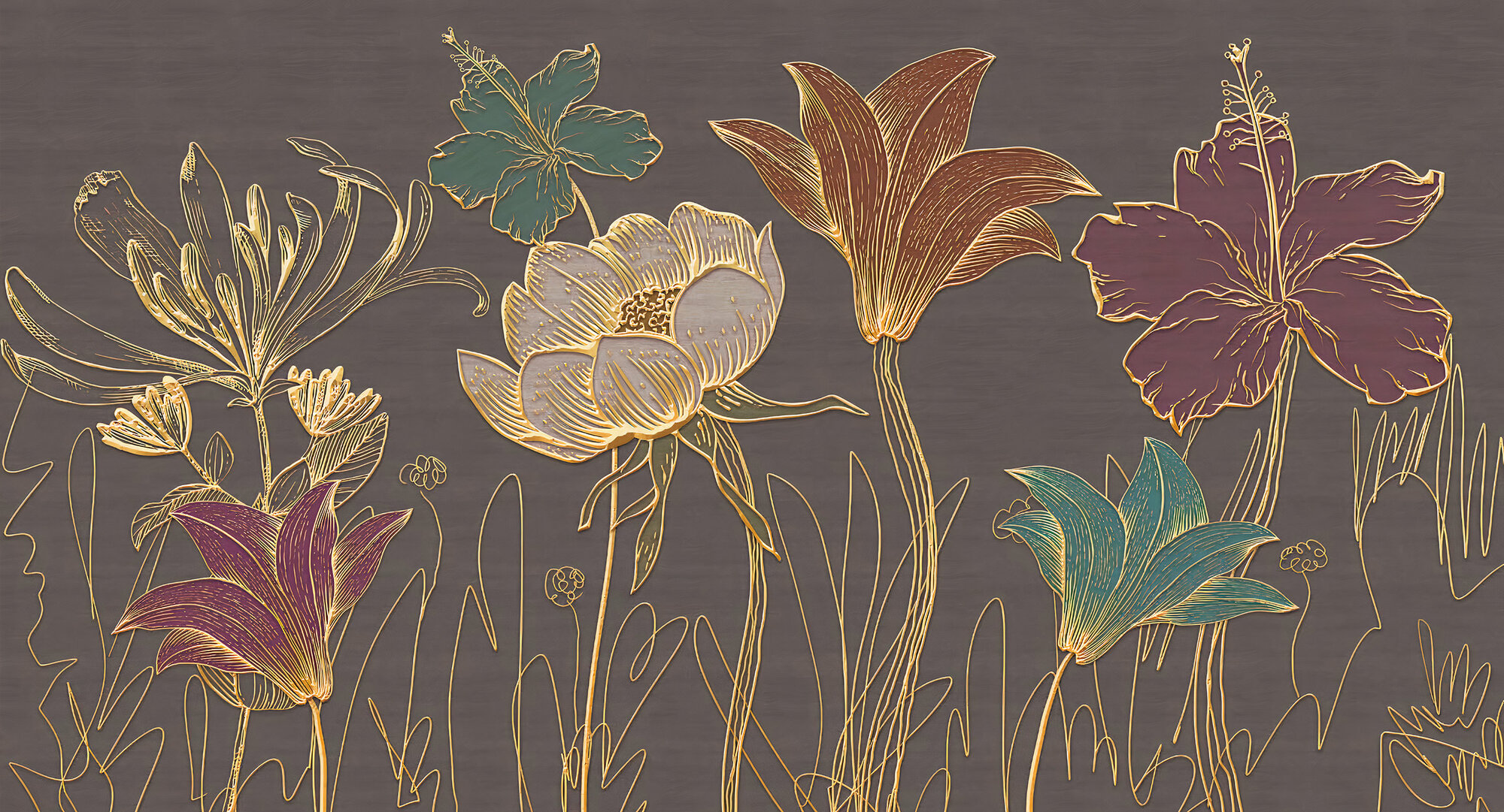 Фотообои Postermarket " Цветы барельеф", флизелиновая основа, виниловое покрытие 300х270 см