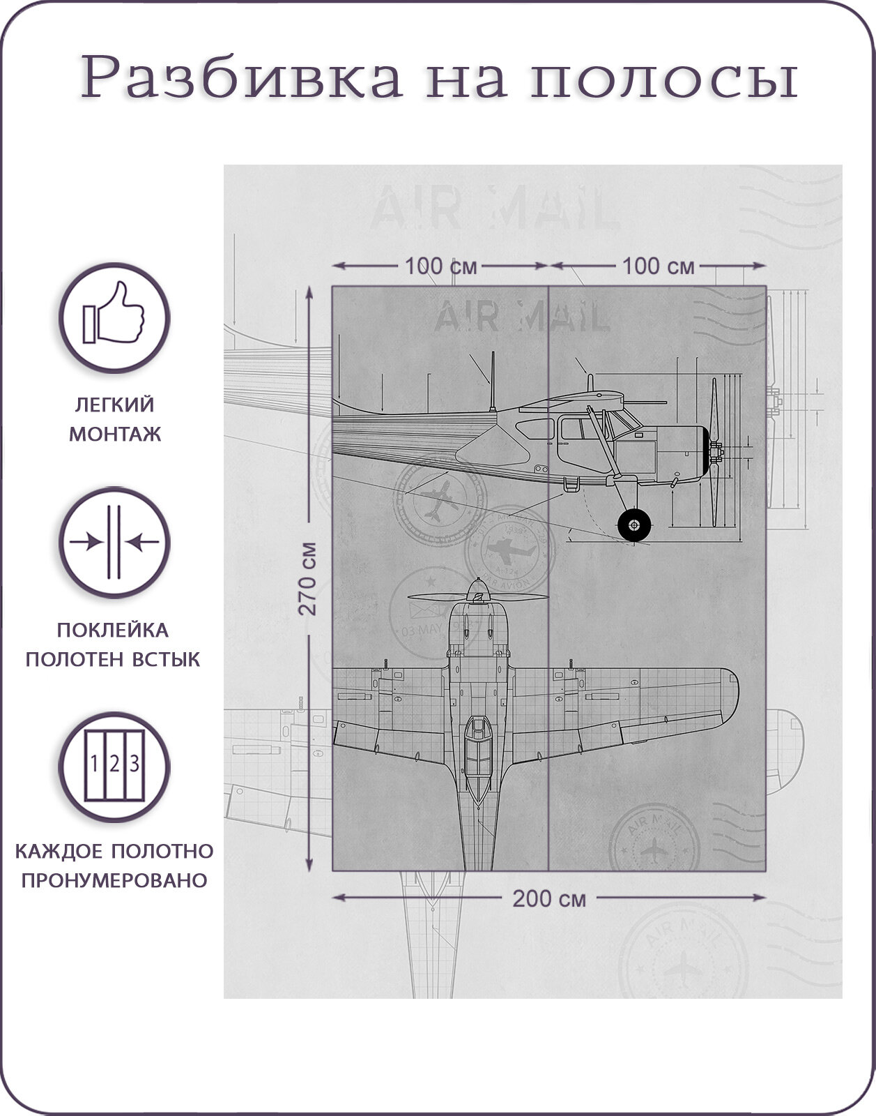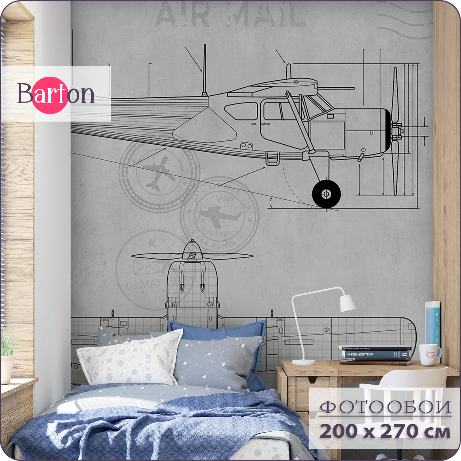 Фотообои на стену флизелиновые 3d Детские Для подростка Самолет Чертеж 200х270 см Bartonwall K273-G информация: