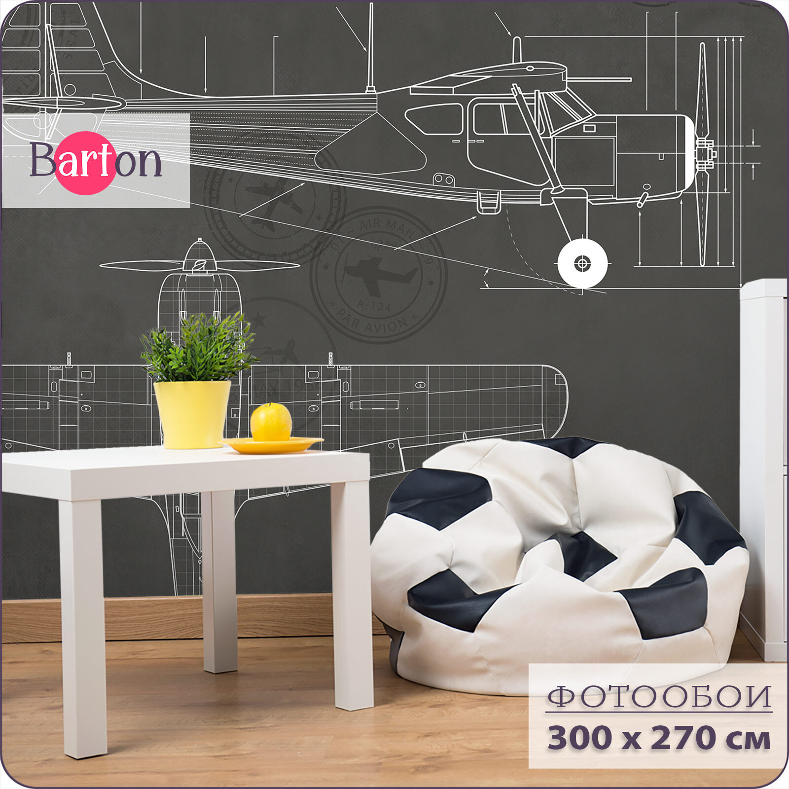 Отзывы на Фотообои на стену флизелиновые 3d Детские Для подростка Самолет Чертеж 300х270 см Bartonwall K273