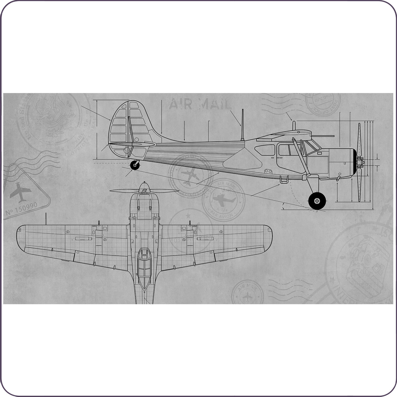 Фотообои на стену флизелиновые 3d Детские Для подростка Самолет Чертеж 200х270 см Bartonwall K273-B 4 002 ₽