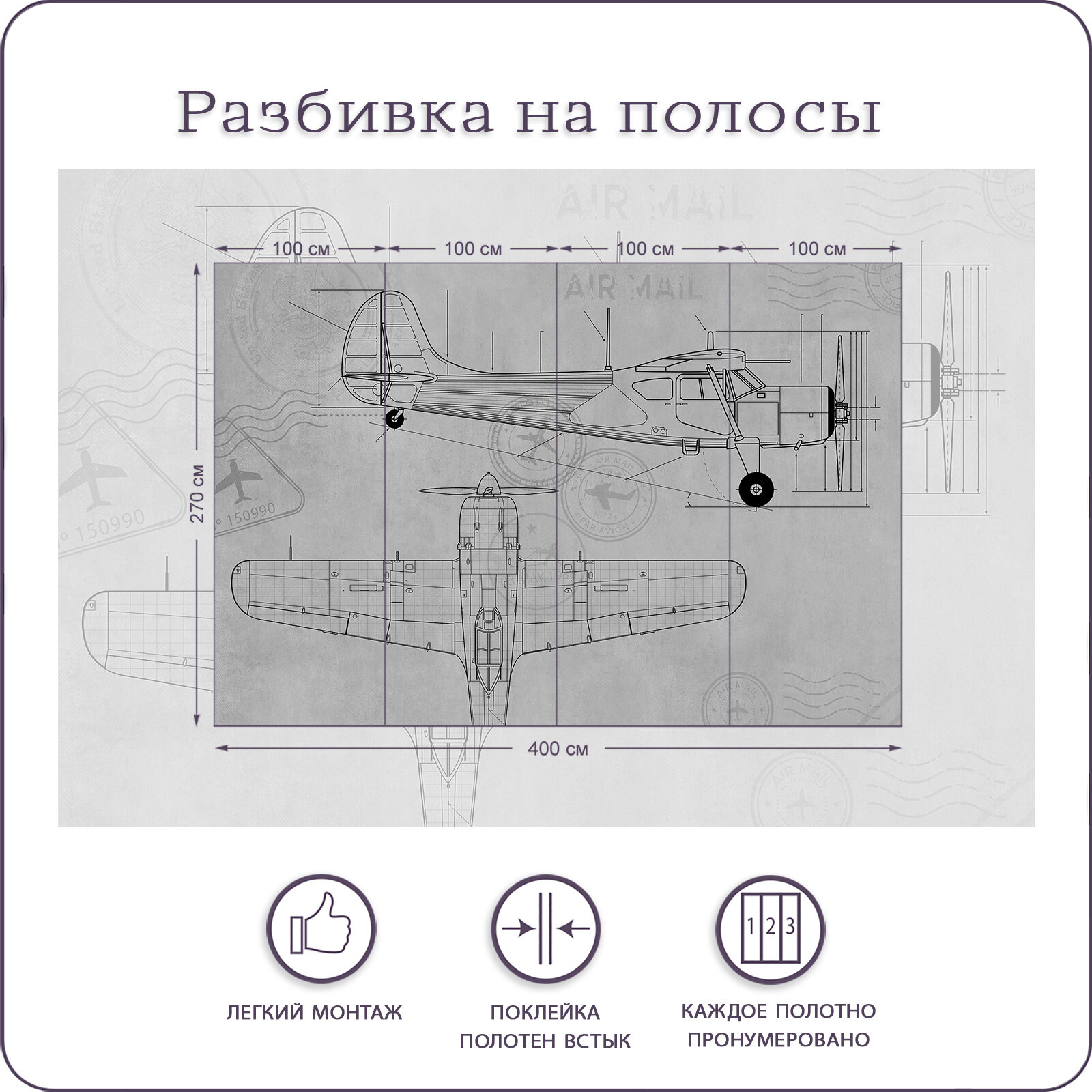 Фотообои на стену флизелиновые 3d Детские Для подростка Самолет Чертеж 400х270 см Bartonwall K273-G информация: