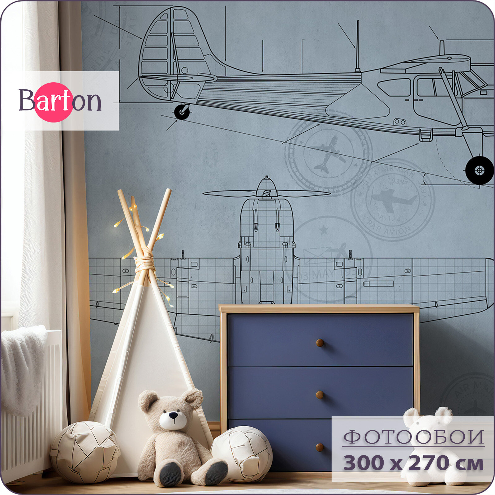 Фотообои на стену флизелиновые 3d Детские Для подростка Самолет Чертеж 300х270 см Bartonwall K273-C информация: