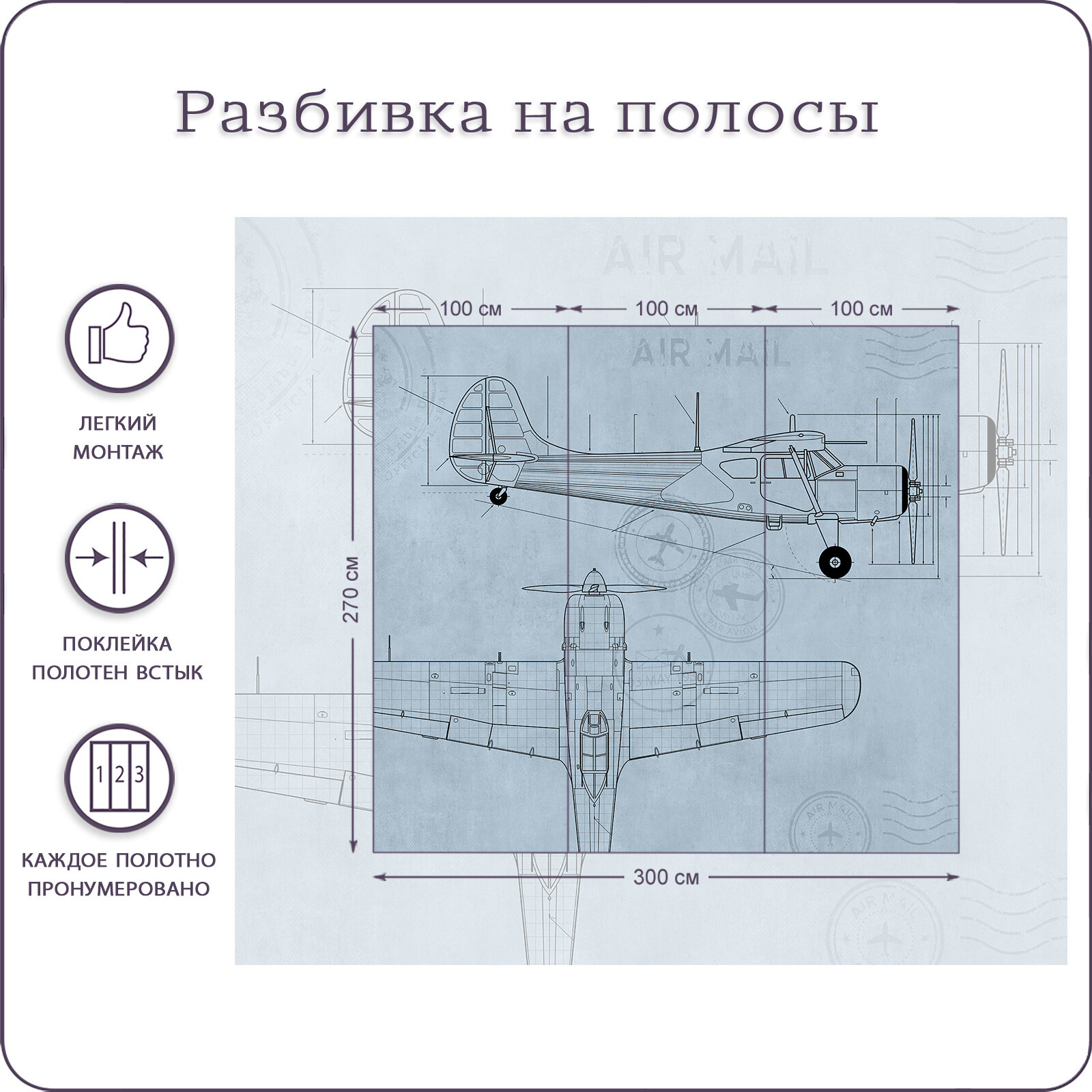 10 цен на Фотообои на стену флизелиновые 3d Детские Для подростка Самолет Чертеж 300х270 см Bartonwall K273-C
