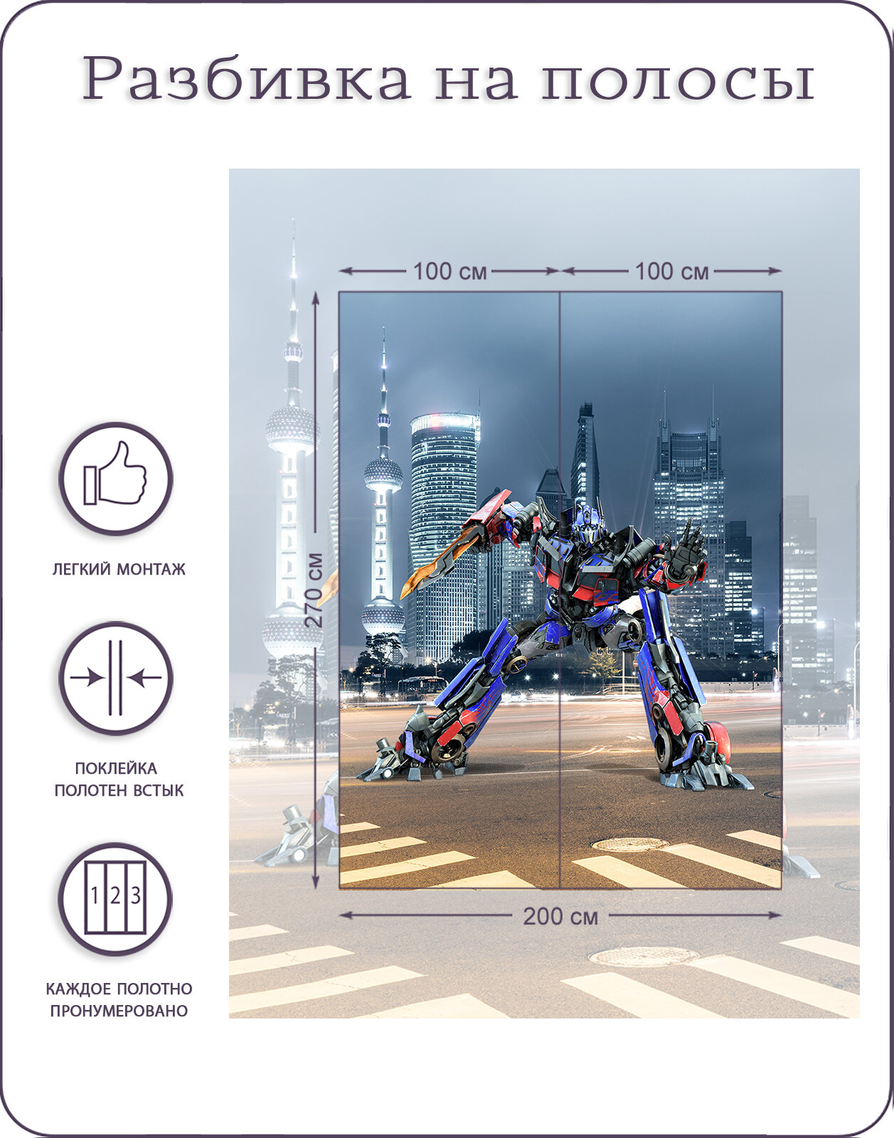 Фотообои на стену флизелиновые 3d Для подростка Роботы Трансформеры 200х270 см Bartonwall K029-C информация: