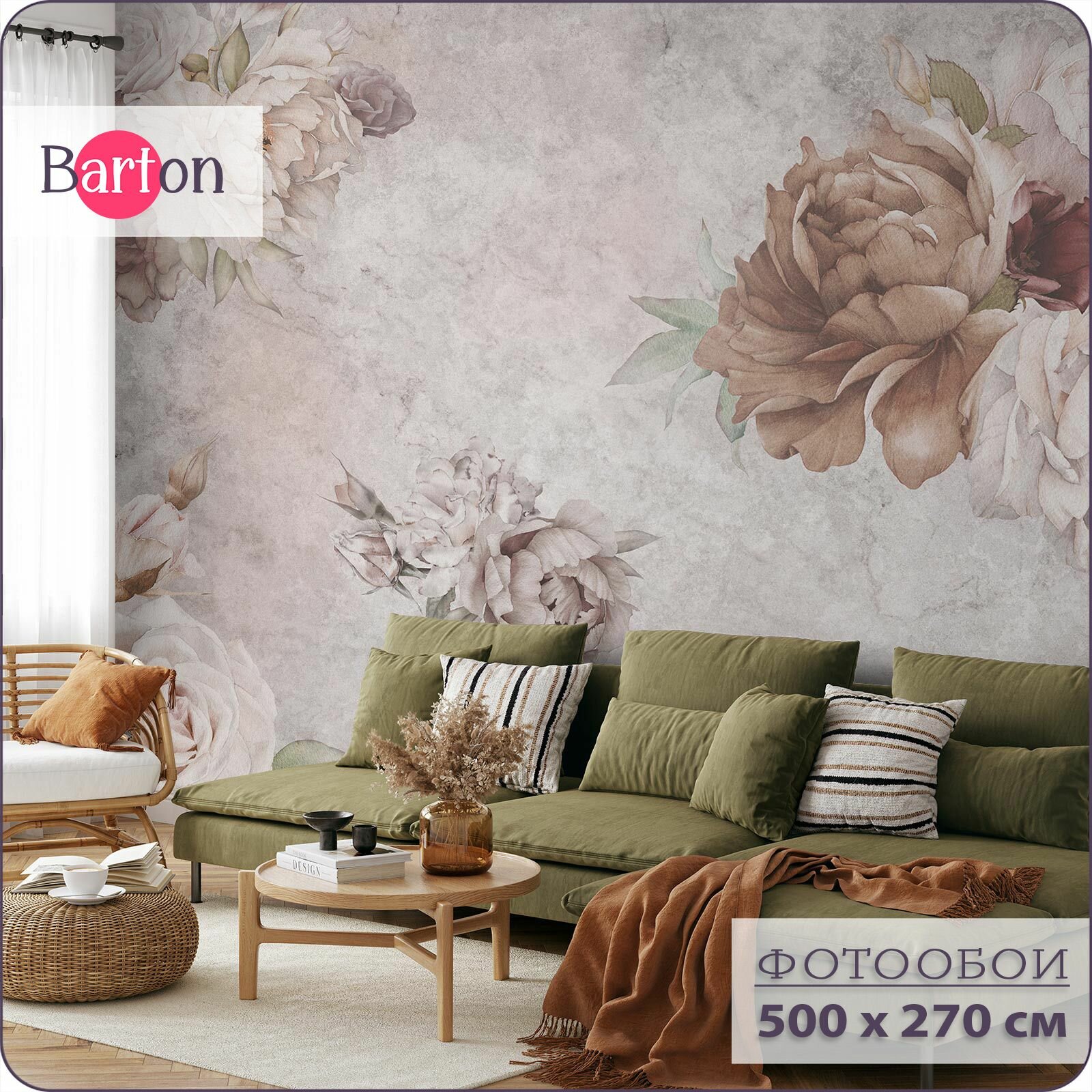 Отзывы на Фотообои на стену флизелиновые 3d Цветы Пионы 500х270 см Bartonwall F011-B