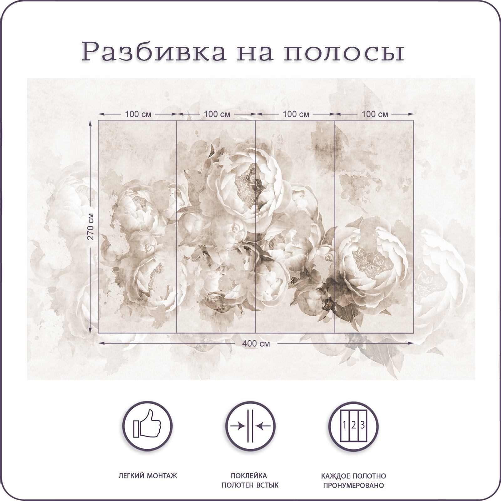 Фотообои на стену флизелиновые 3d Цветы Пионы 300x270 см Bartonwall F001-08 6 003 ₽