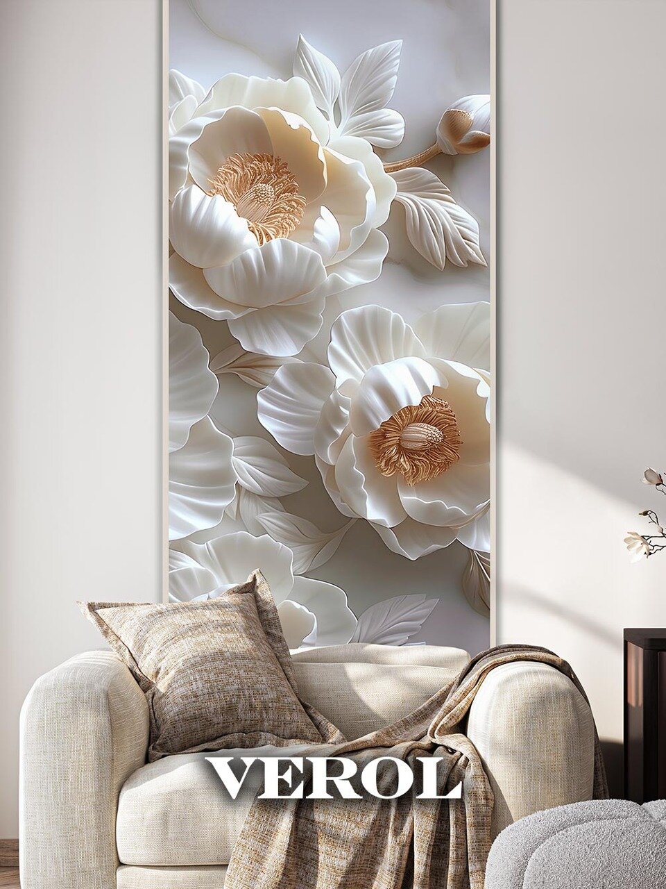 10 цен на Фотообои 3D флизелиновые VEROL "Пионы барельеф" 100*270 см, виниловое покрытие