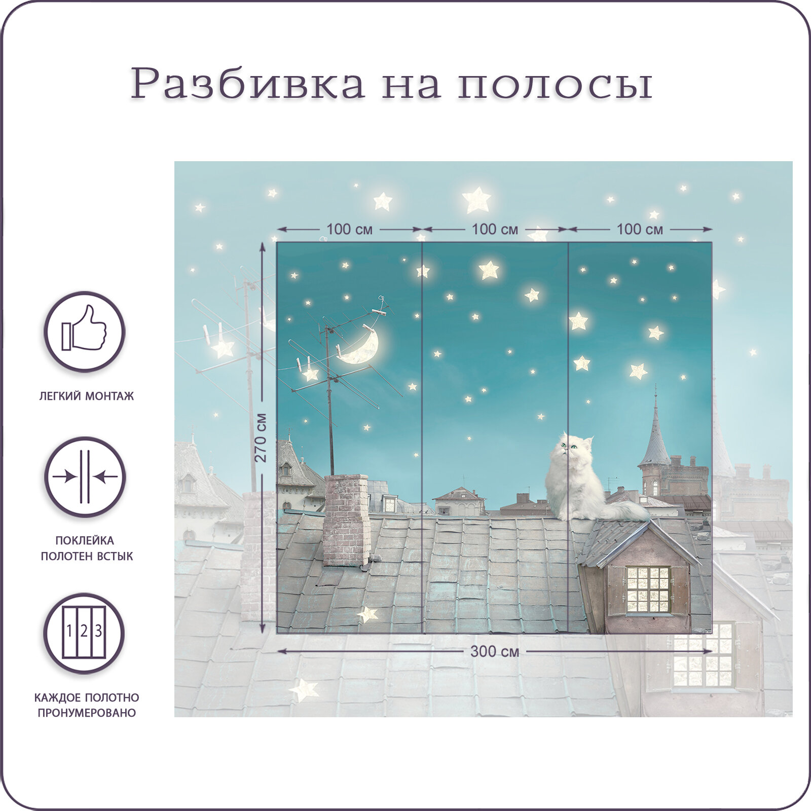 Отзывы на Фотообои на стену флизелиновые 3d Детские Кот на крыше 300х270 см Bartonwall K033