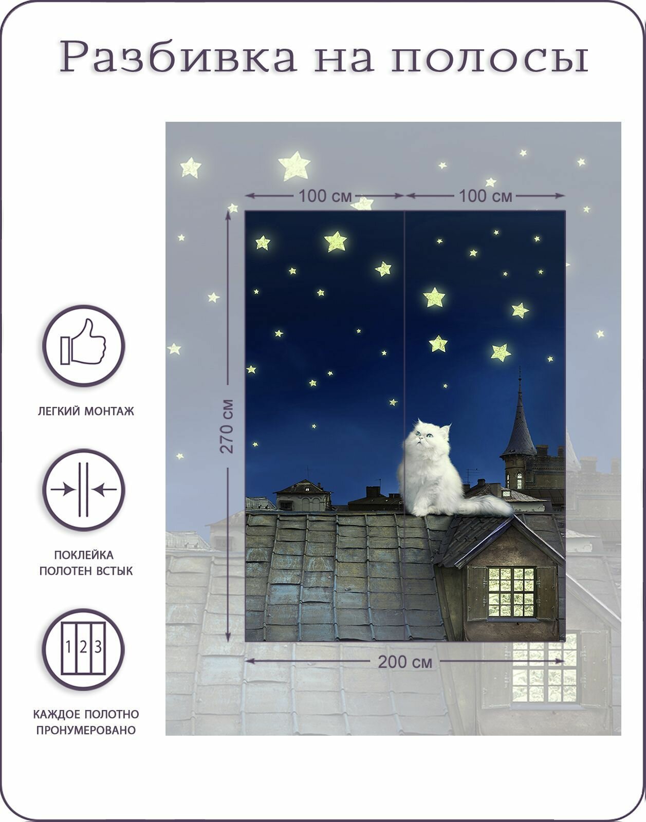 Фотообои на стену флизелиновые 3d Детские Кот на крыше 200х270 см Bartonwall K033-C информация:
