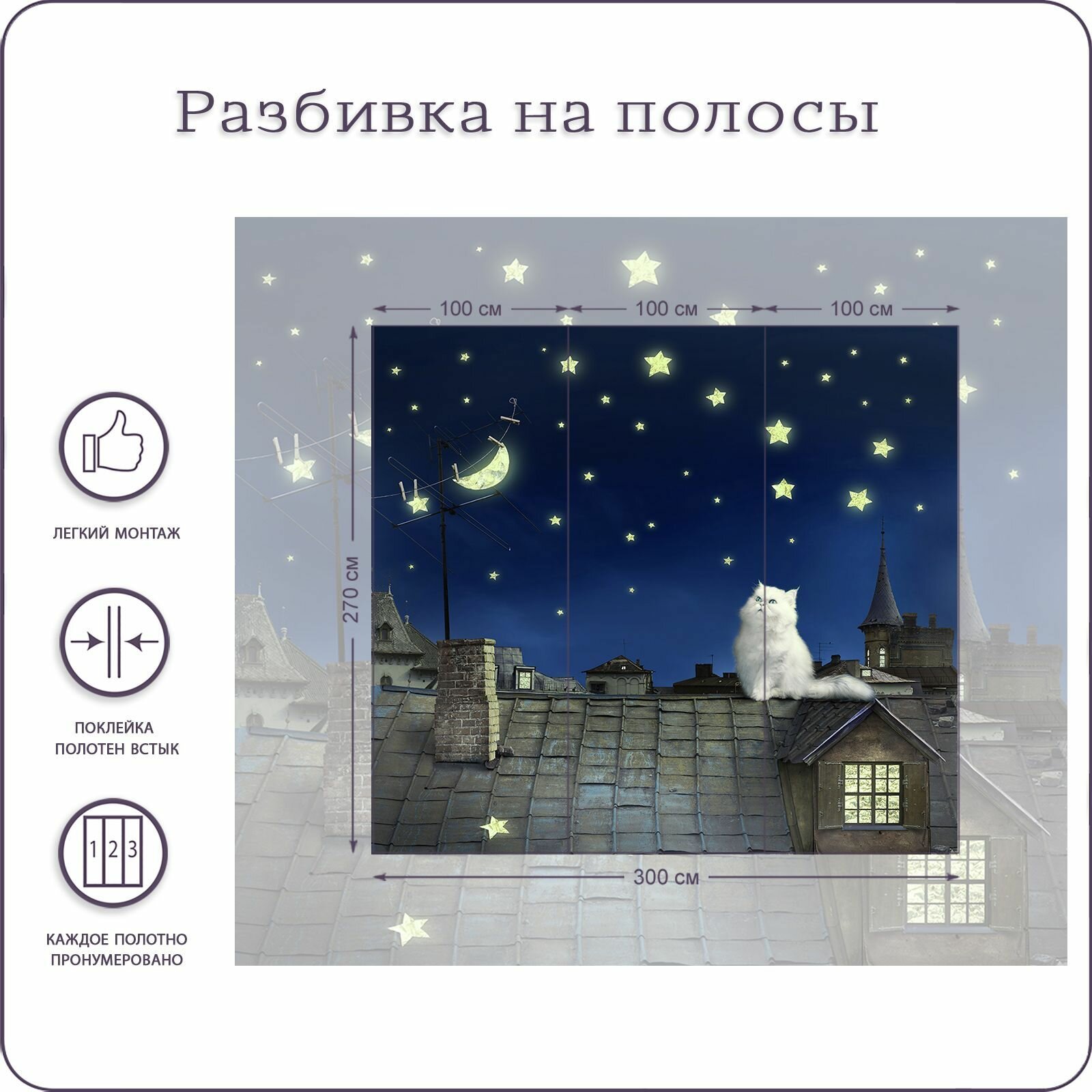 10 цен на Фотообои на стену флизелиновые 3d Детские Кот на крыше 300х270 см Bartonwall K033-C