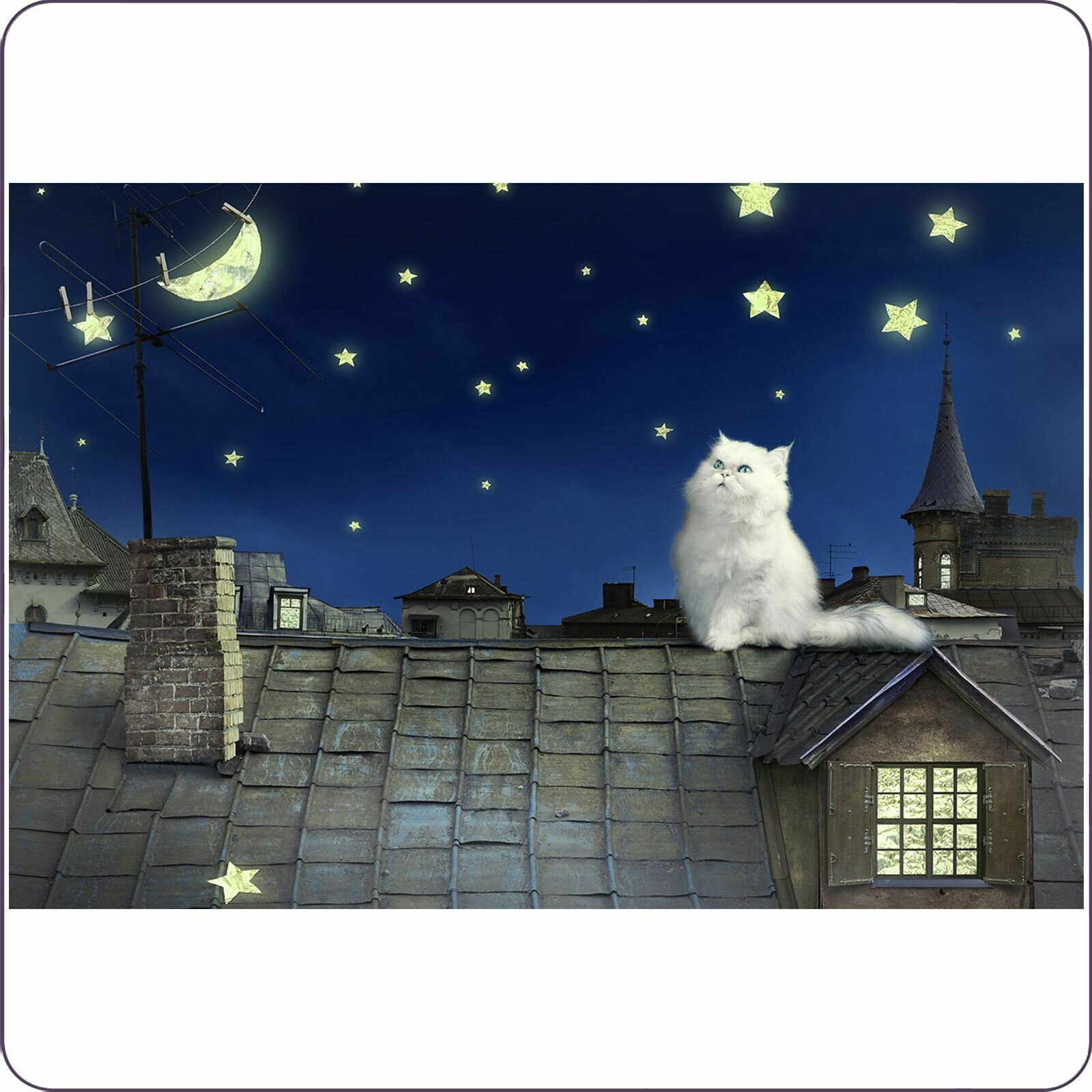 Отзывы на Фотообои на стену флизелиновые 3d Детские Кот на крыше 400х270 см Bartonwall K033-C