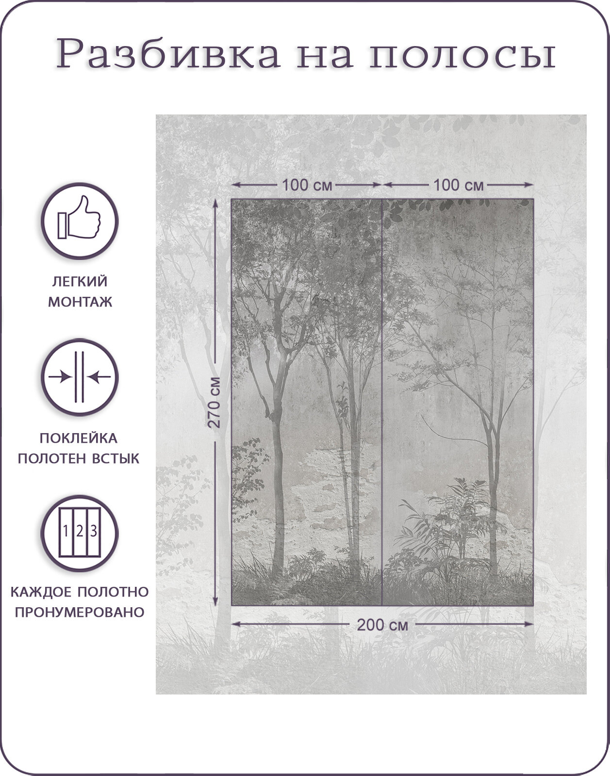 Фотообои на стену флизелиновые 3d Поверхности Бетон Лес 200х270 см Bartonwall M265 информация: