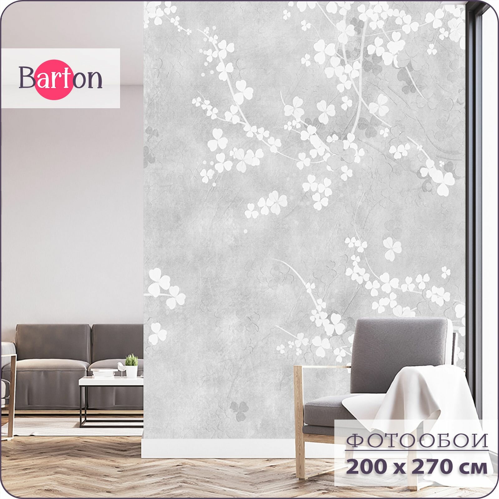 10 цен на Фотообои на стену флизелиновые 3d Лофт Бетон Цветочный узор 200х270 см Bartonwall M249-G