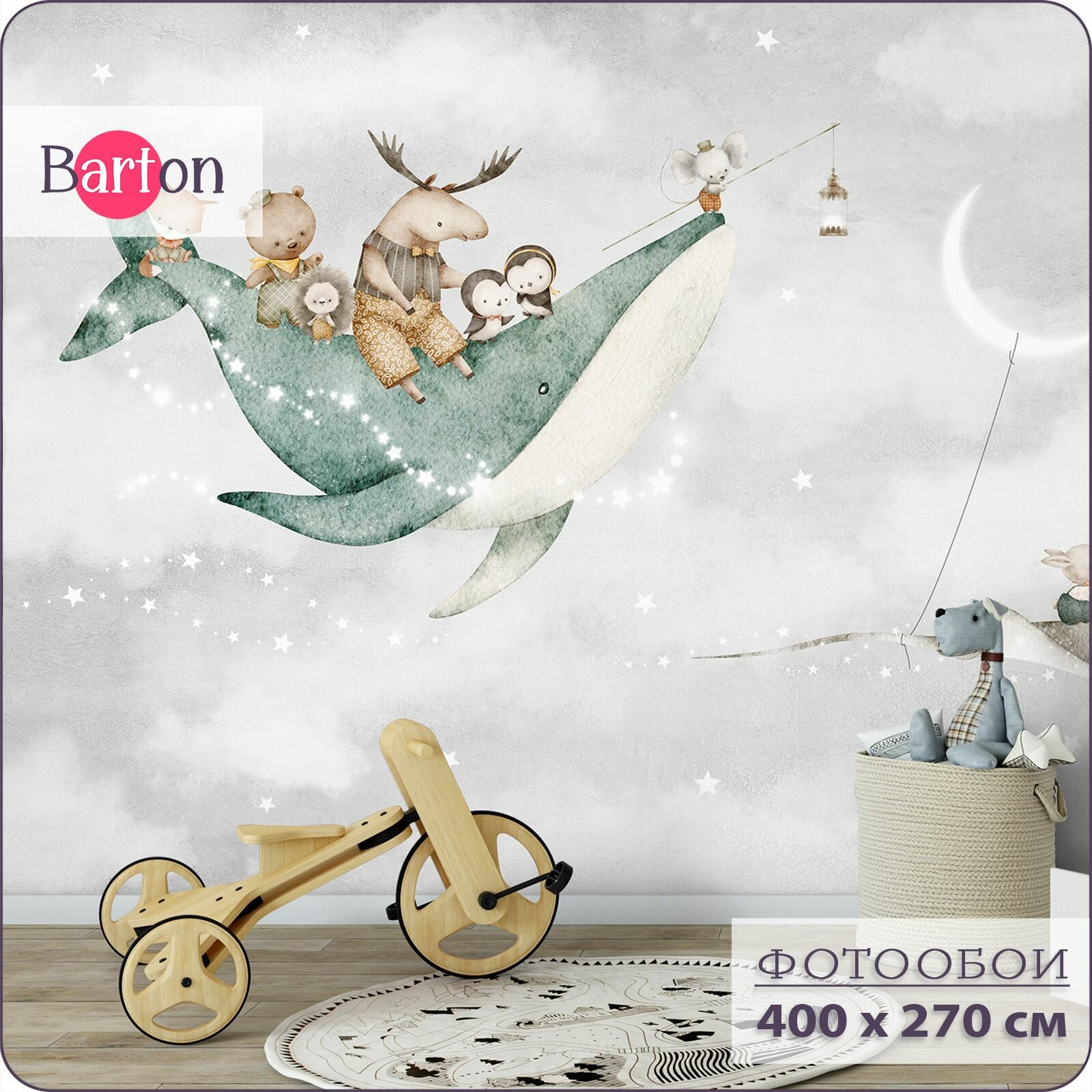 Фотообои на стену флизелиновые 3d Детские Животные Луна Звезды 400х270 см Bartonwall K302 информация: