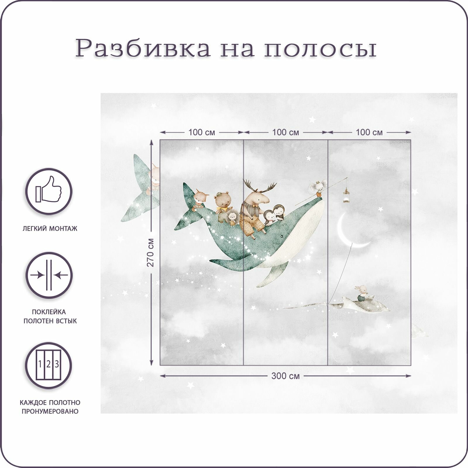 Фотообои на стену флизелиновые 3d Детские Животные Луна Звезды 300х270 см Bartonwall K302 информация: