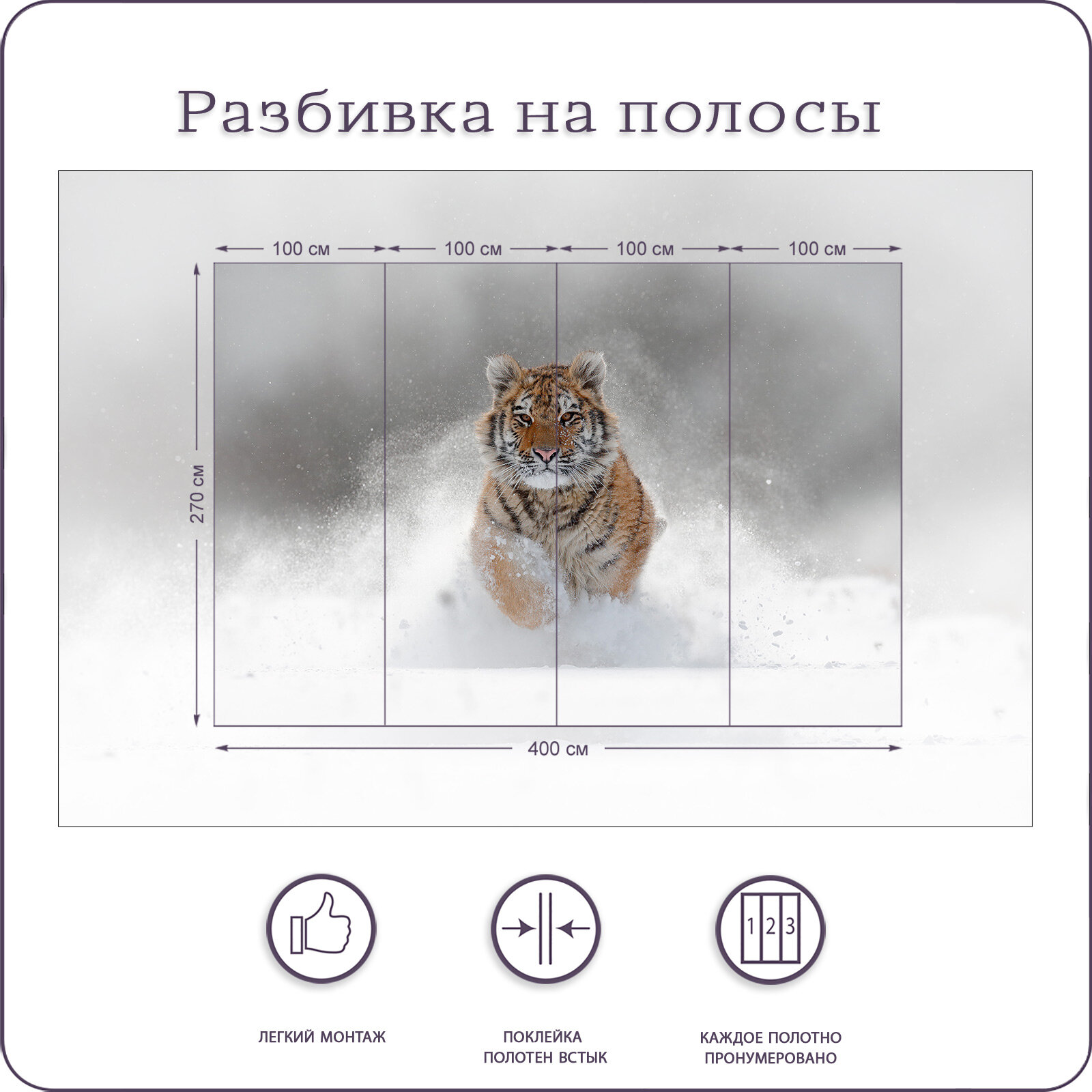 10 цен на Фотообои на стену флизелиновые 3d Тигр Снег 400х270 см Bartonwall N031