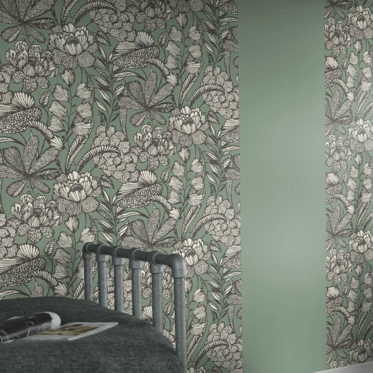 Обои Rasch Trend 1.06 x 10.05 947410 на флизелиновой основе метровые, цвет зеленый, моющиеся, рисунок однотонные