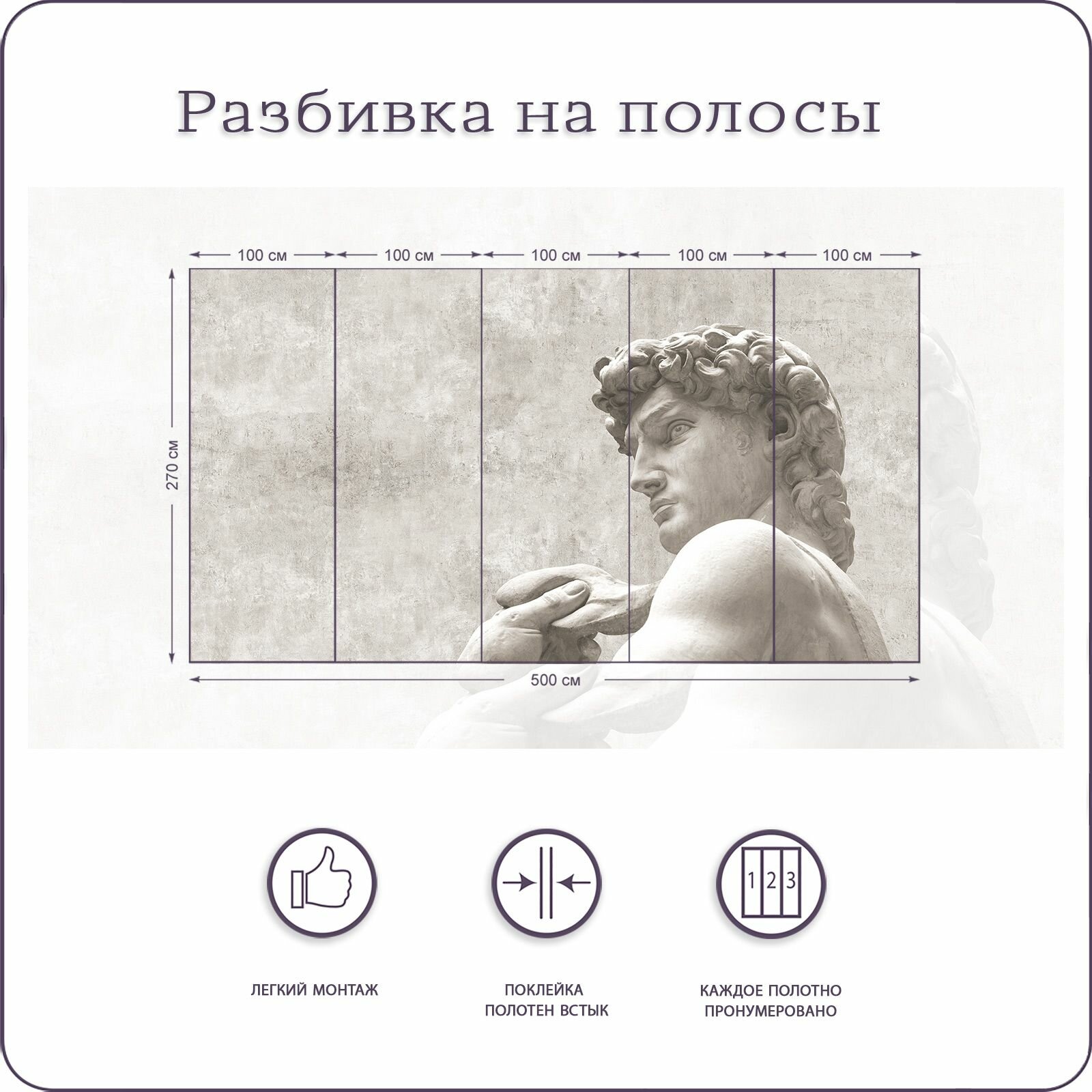 Фотообои на стену флизелиновые 3d Штукатурка Скульптура Давид 500х270 см Bartonwall M255-B информация: