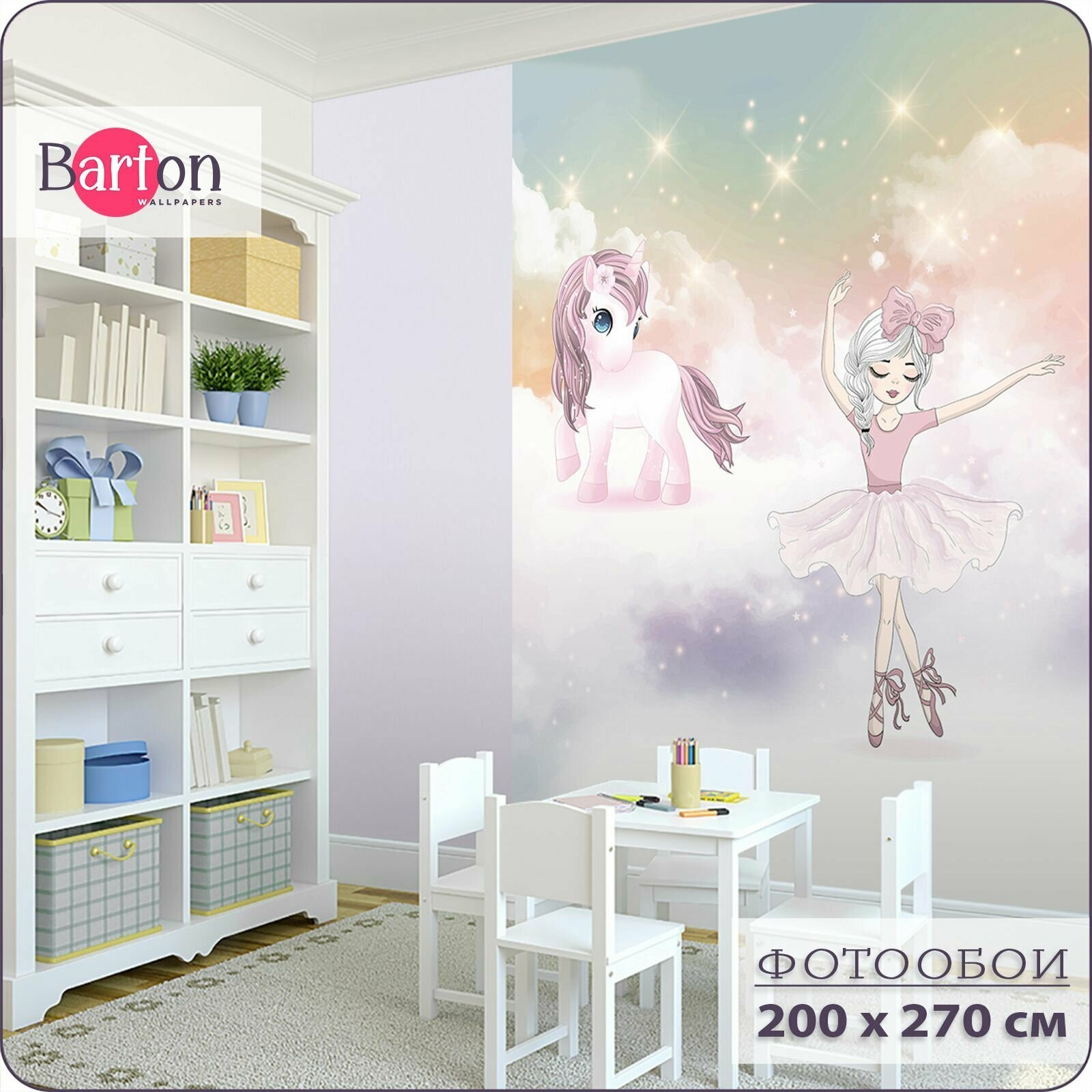 Фотообои на стену флизелиновые 3d Детские Для девочки Балерина Единорог 200х270 см Bartonwall K190 информация: