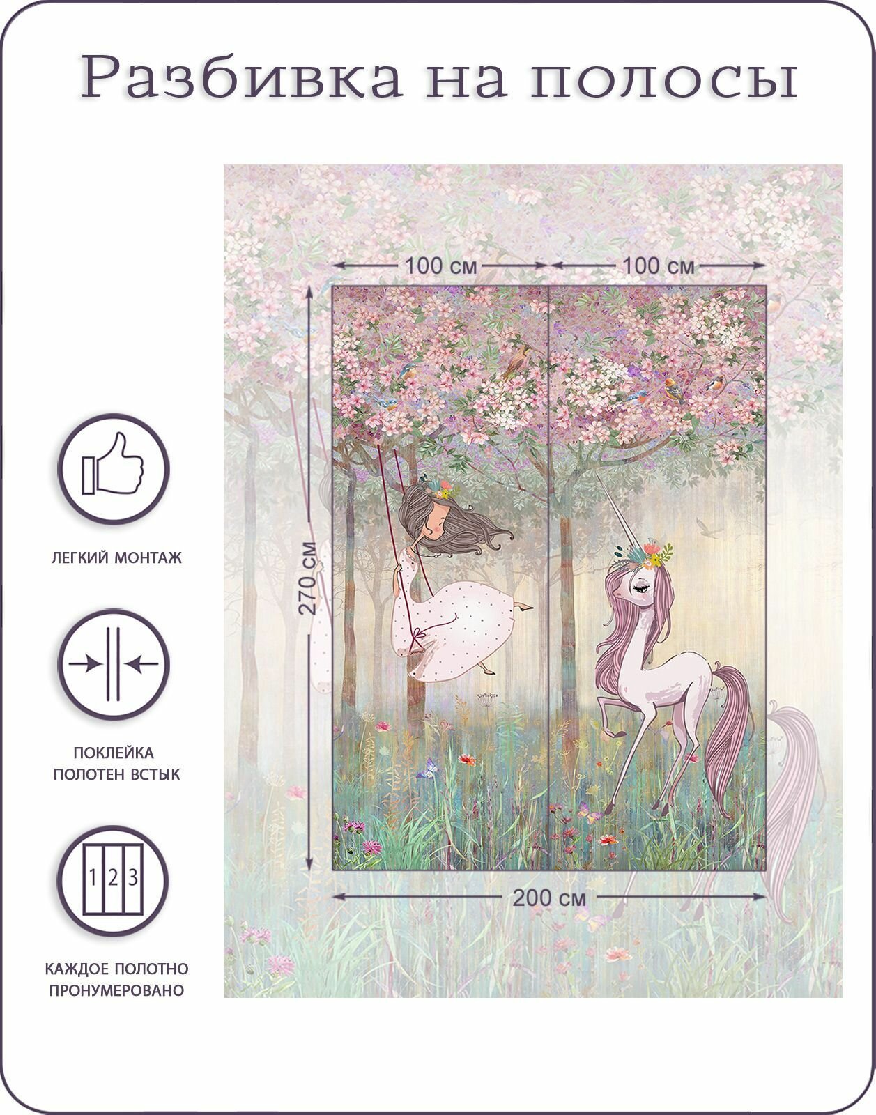 Фотообои на стену флизелиновые 3d Детские Для девочек Принцесса Единорог 200х270 см Bartonwall K255 информация: