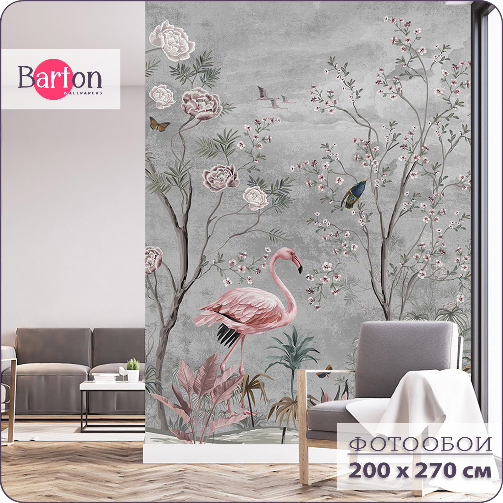 Фотообои на стену флизелиновые 3d Цветы Попугаи Павлины 200х270 см Bartonwall M205 4 600 ₽