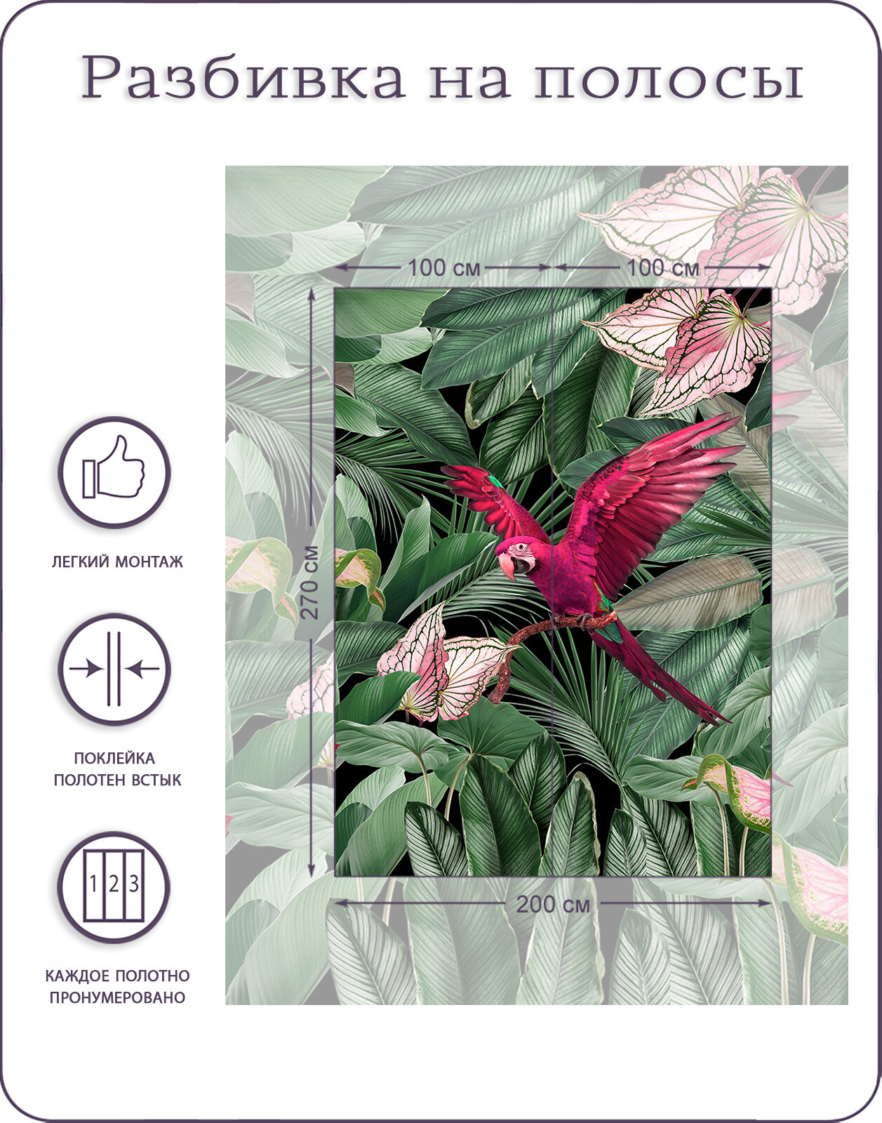 Фотообои на стену флизелиновые 3d Природа Джунгли Тропики Попугай 200х270 см Bartonwall N050 информация: