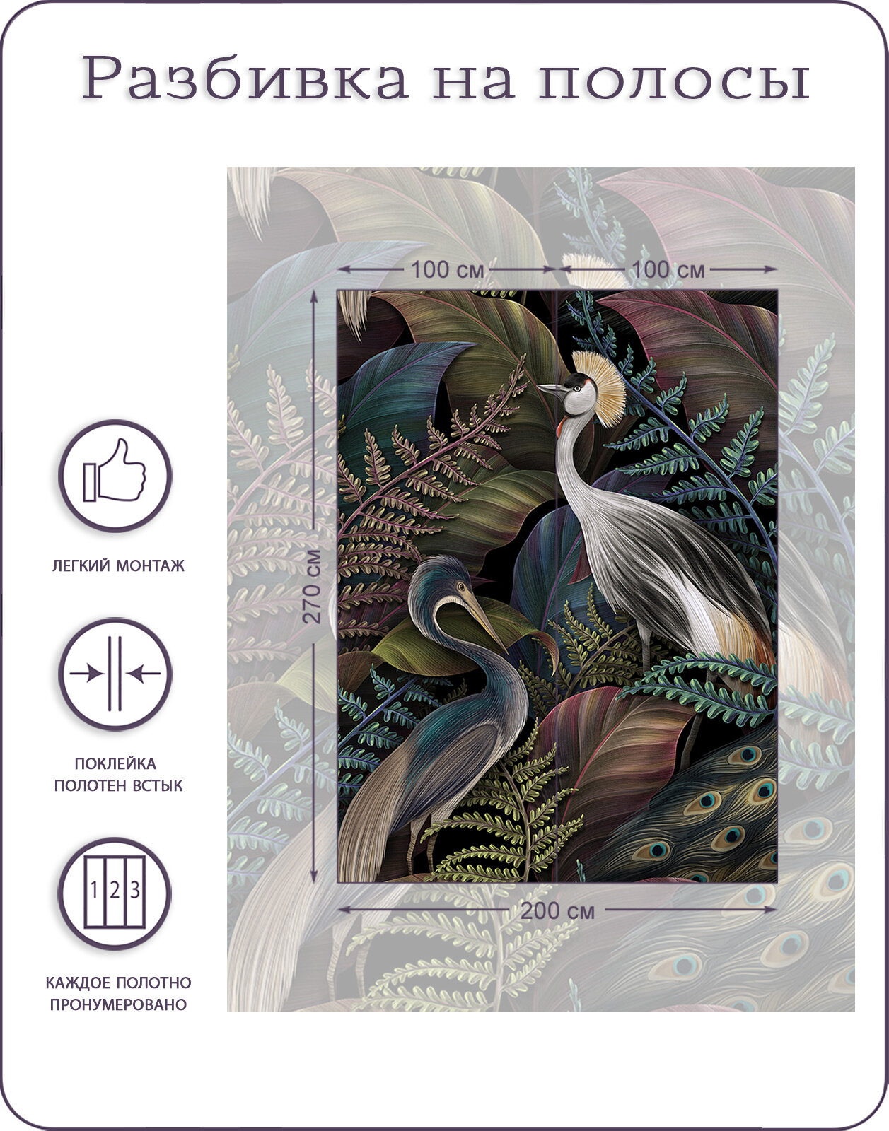 Фотообои на стену флизелиновые 3d Листья Тропики Птицы 200х270 см Bartonwall N120 информация: