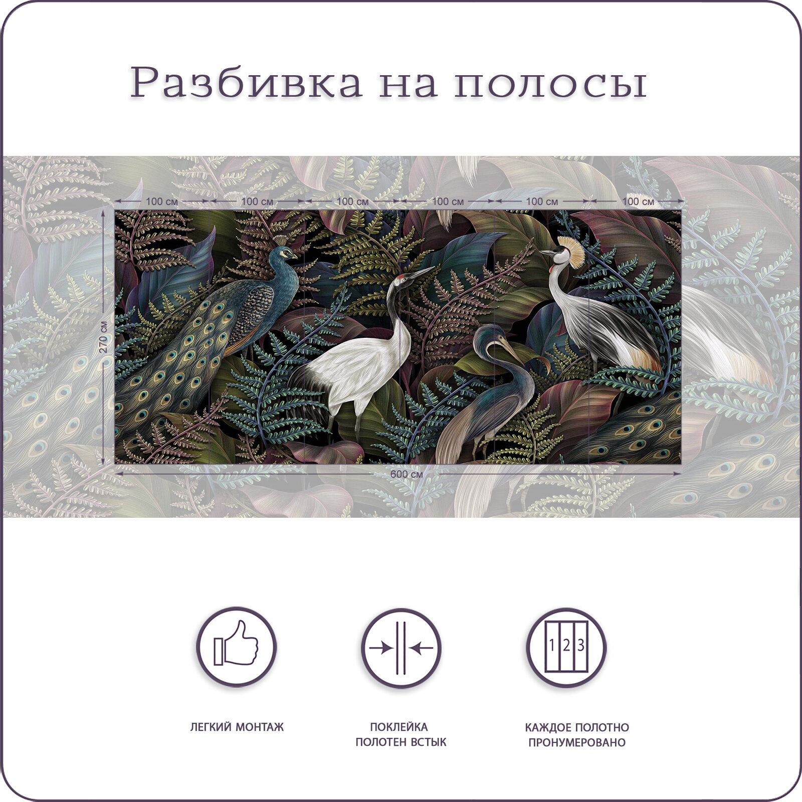 Фотообои на стену флизелиновые 3d Листья Тропики Птицы 600х270 см Bartonwall N120 информация: