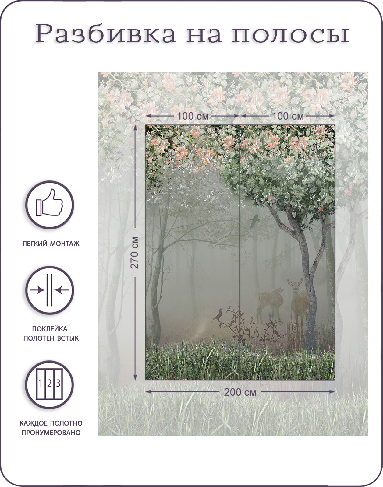 Фотообои на стену флизелиновые 3d Природа Лес 200х270 см Bartonwall N052 информация:
