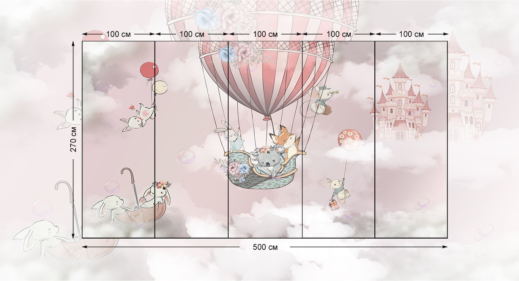 Фотообои на стену флизелиновые 3d Детские Для девочки Животные Воздушный шар 500х270 см Bartonwall K269 информация: