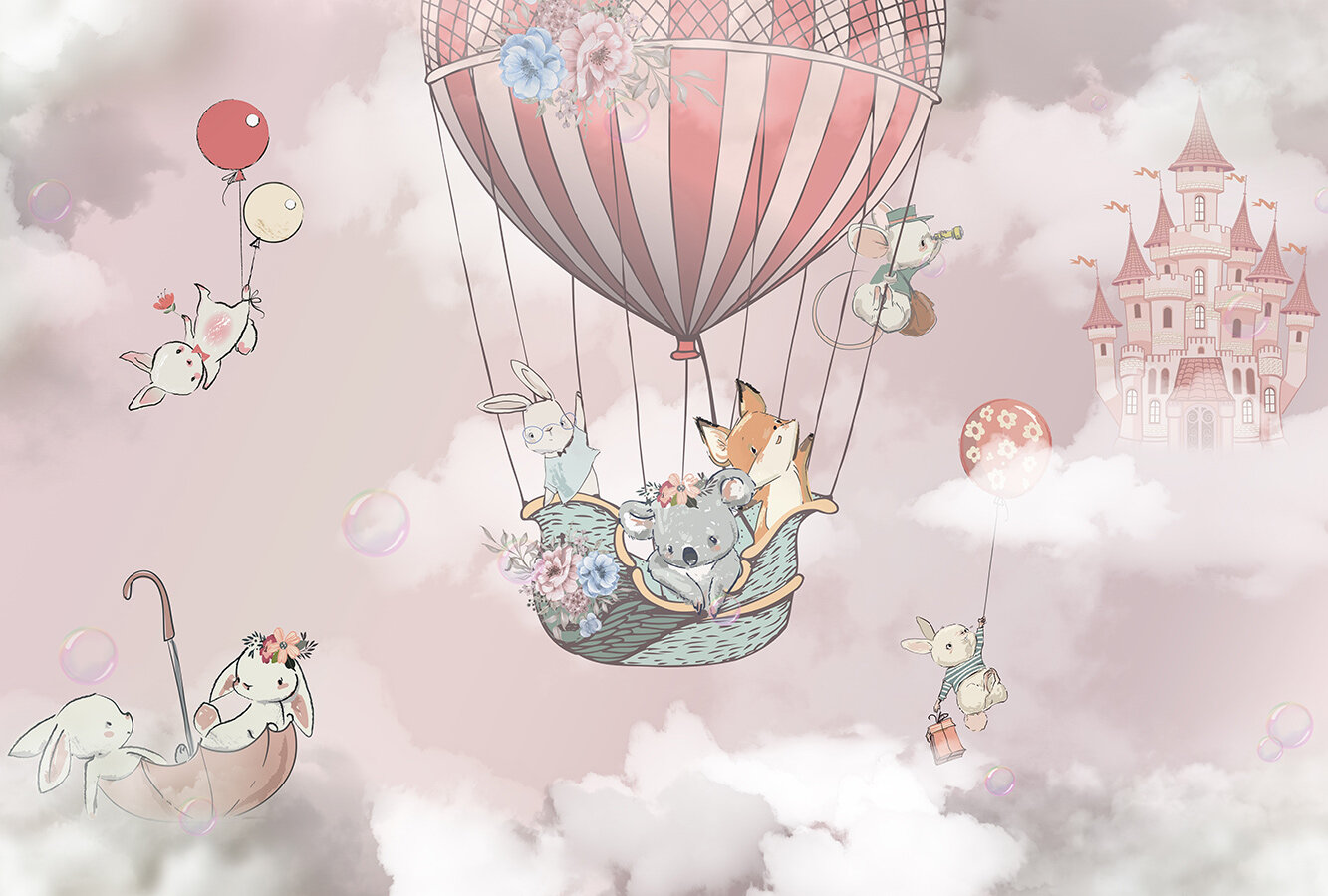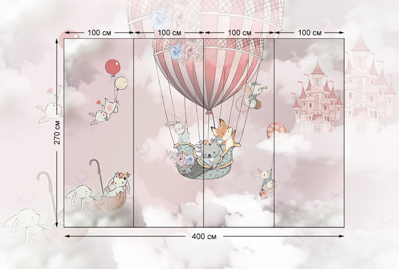 Фотообои на стену флизелиновые 3d Детские Для девочки Животные Воздушный шар 400х270 см Bartonwall K269 информация: