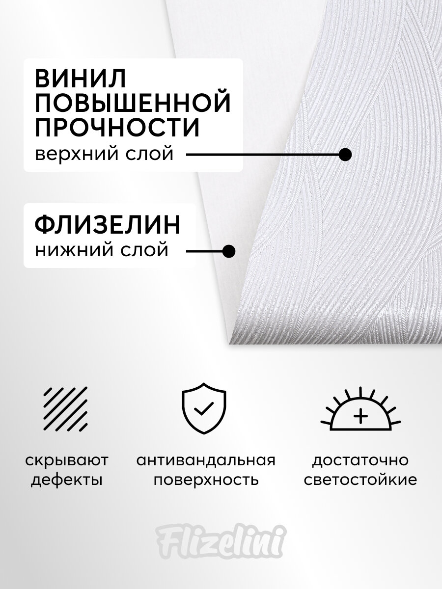 Обои антивандальные виниловые на флизелине, волны светло-серые, метровые, для кухни, Wave (Flizelini, 1878-21) информация: