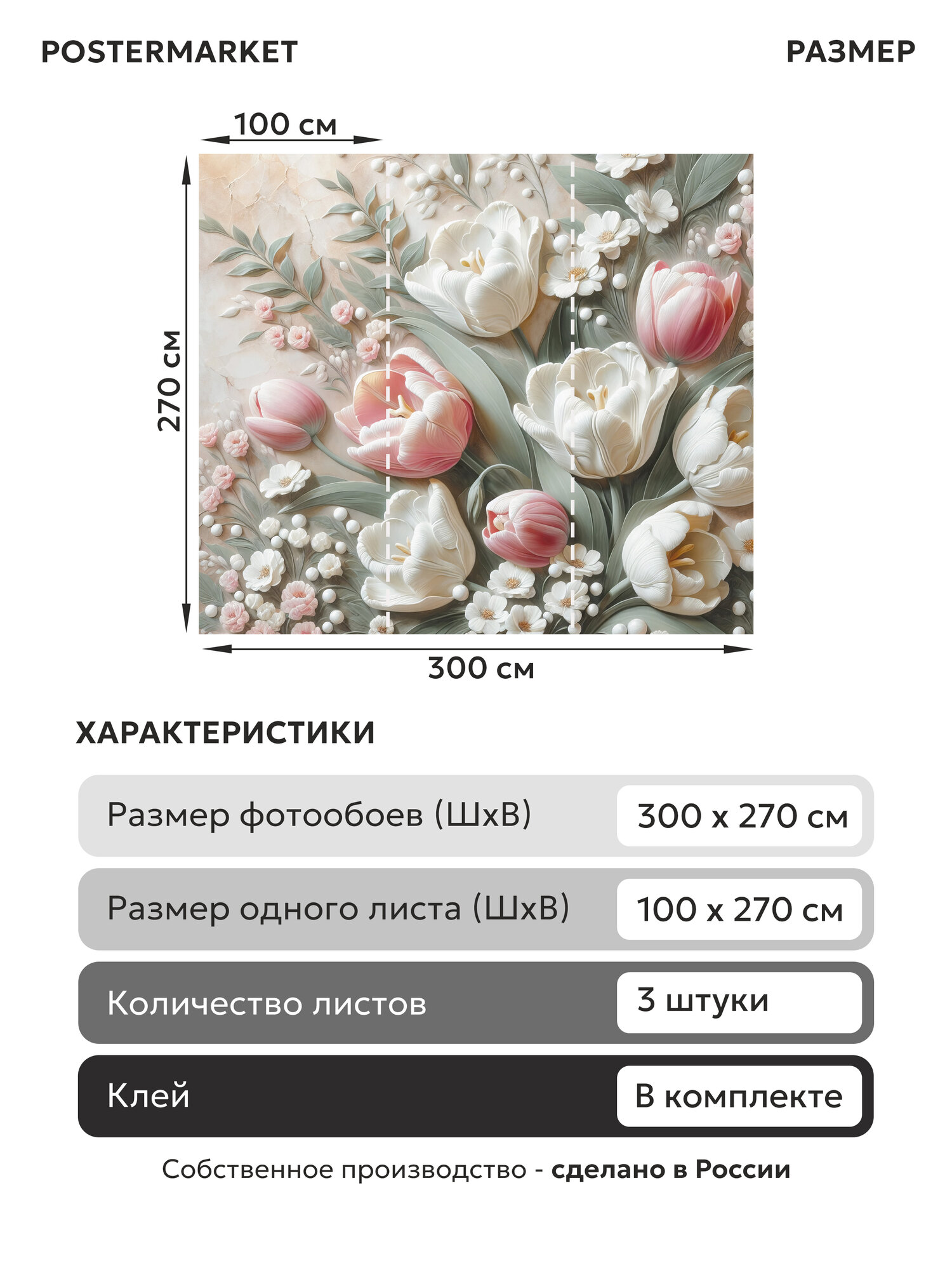 Фотообои Postermarket " Цветы барельеф", флизелиновая основа, виниловое покрытие 300х270 см информация: