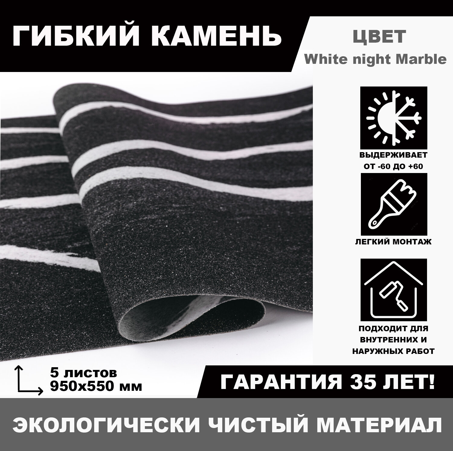 Гибкий камень White night Marble информация: