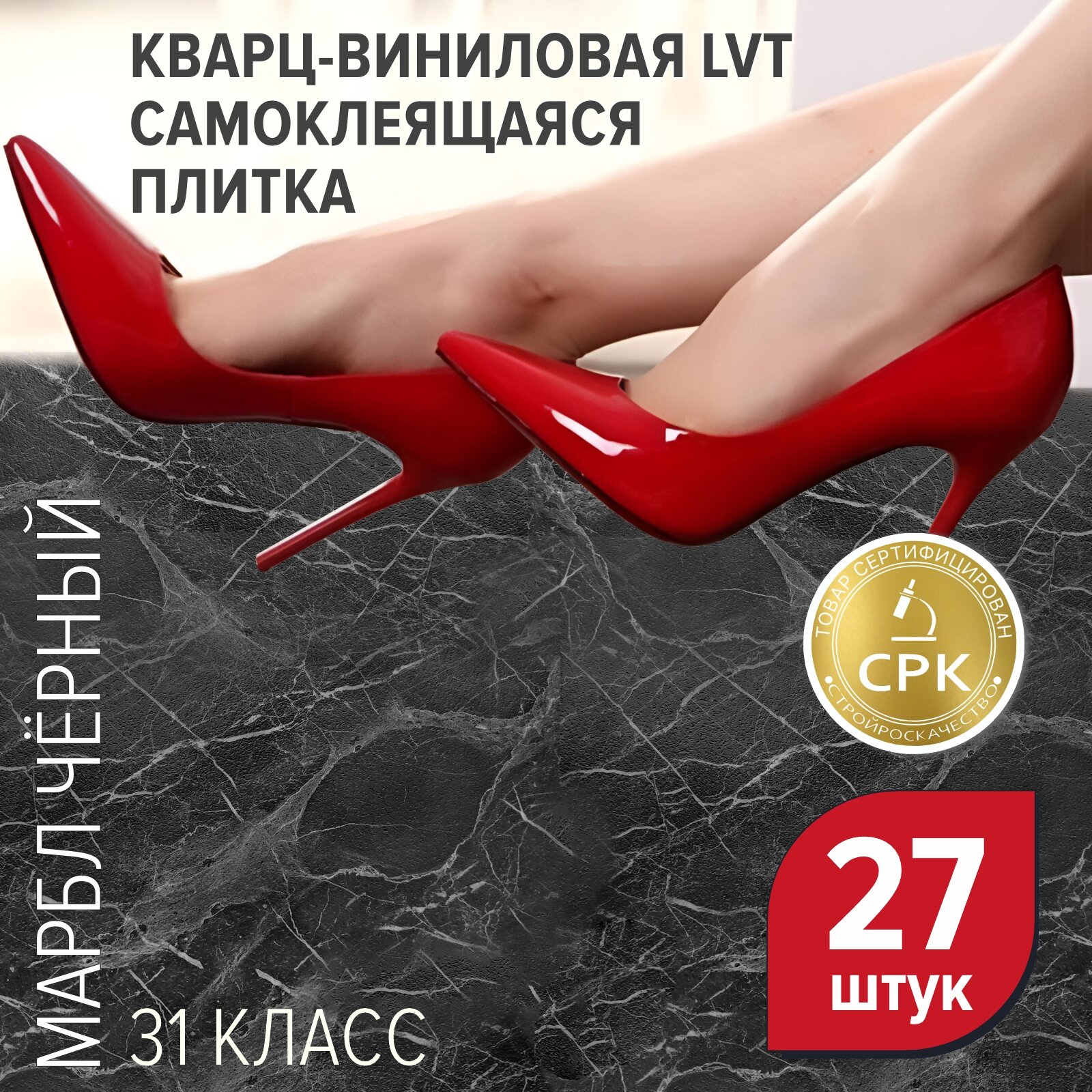 10 цен на Самоклеящаяся плитка для пола влагостойкая кварц виниловая клеевая Bazzart "Марбл черный" кварц-винил 30.48 х 30.48 см 27 шт.