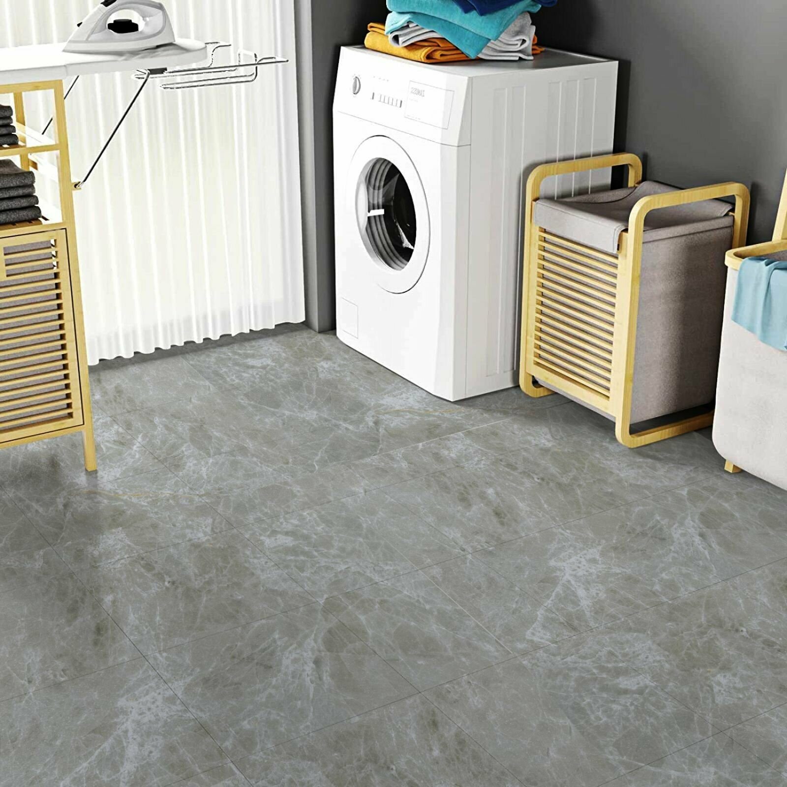 Cамоклеящаяся влагостойкая кварц виниловая плитка для пола клеевая "Грей стоун" 30.48 х 30.48 см 18 шт. вместо линолеума и ламината из МДФ 2 462 ₽