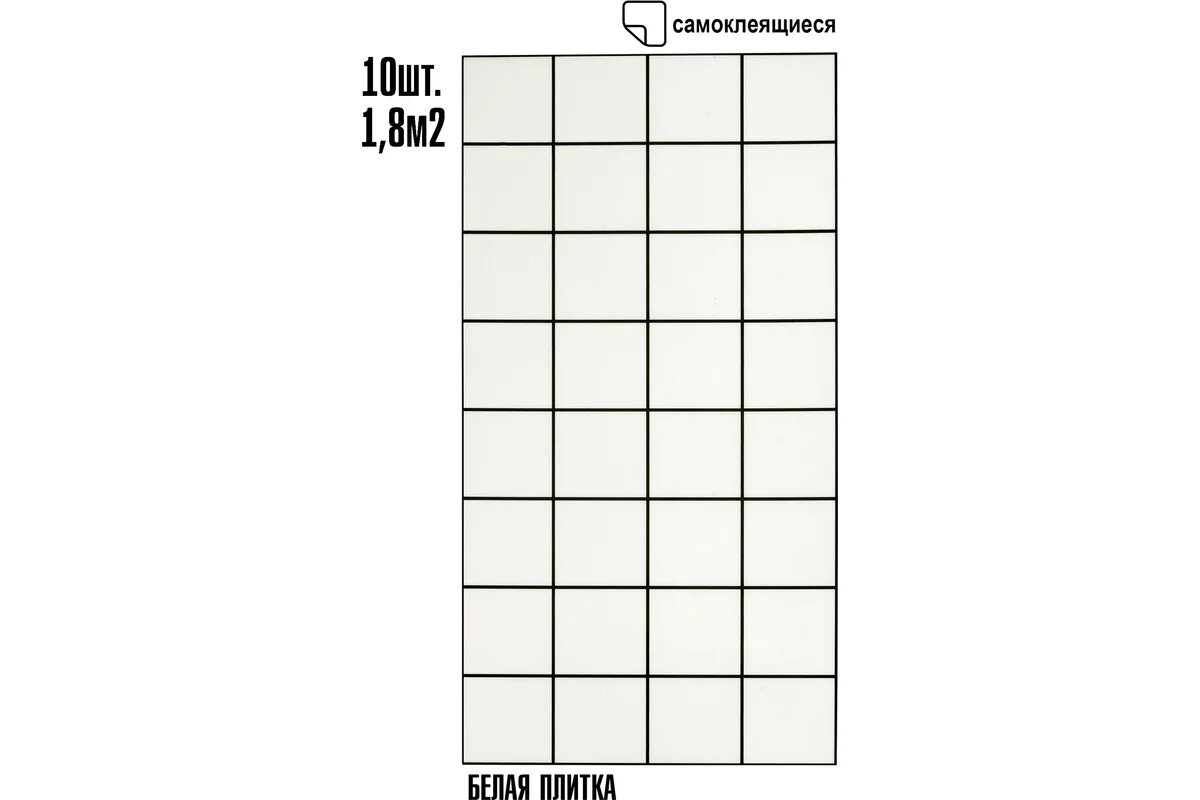 Самоклеящаяся ПВХ плитка LAKO мини комплект 10 шт, Белая плитка, 32 класс, толщина 2 мм, 1.8 м2 LKD-PH005-MINI10 информация: