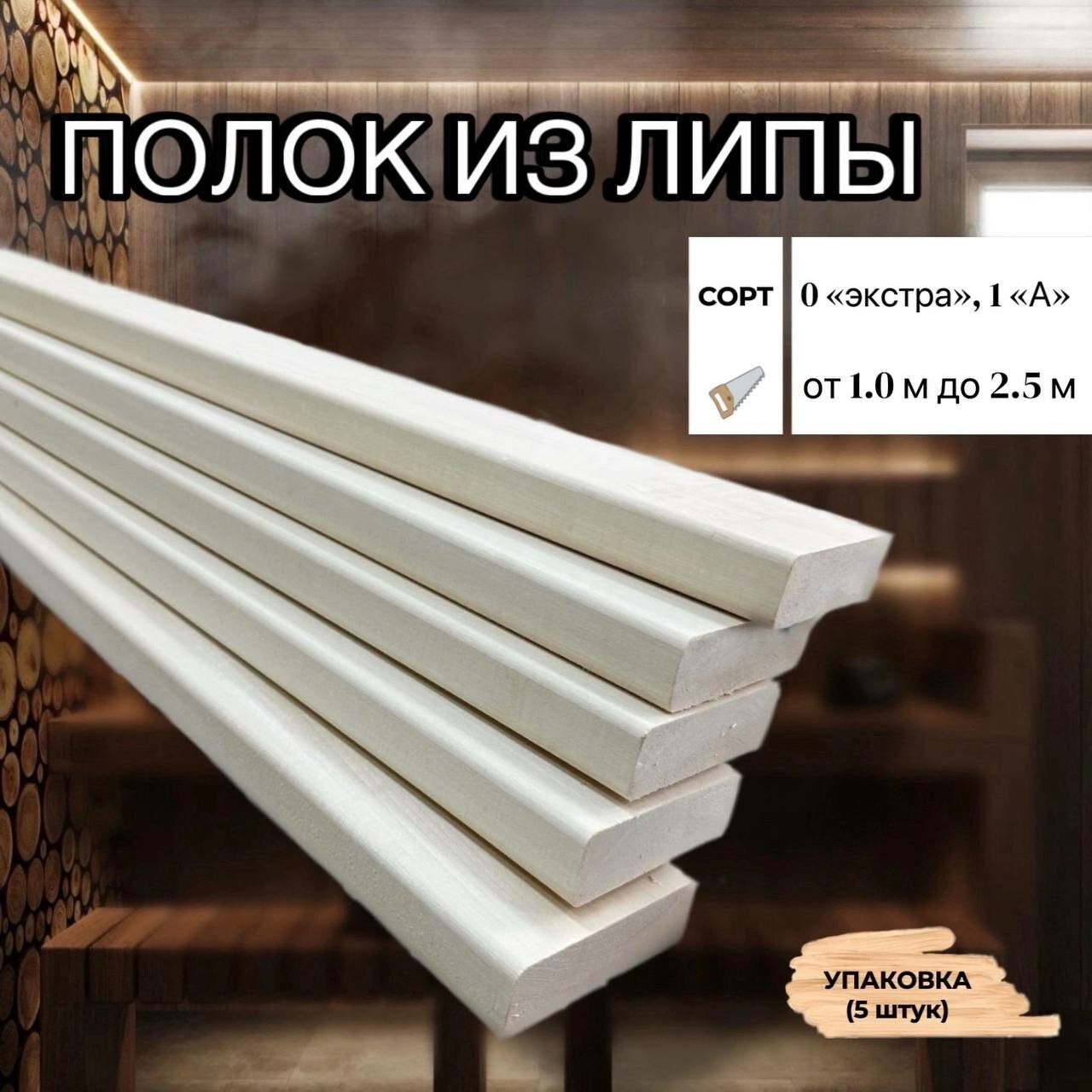 Доска полковая в баню из липы сорт 1"A" 26*90*1400мм информация: