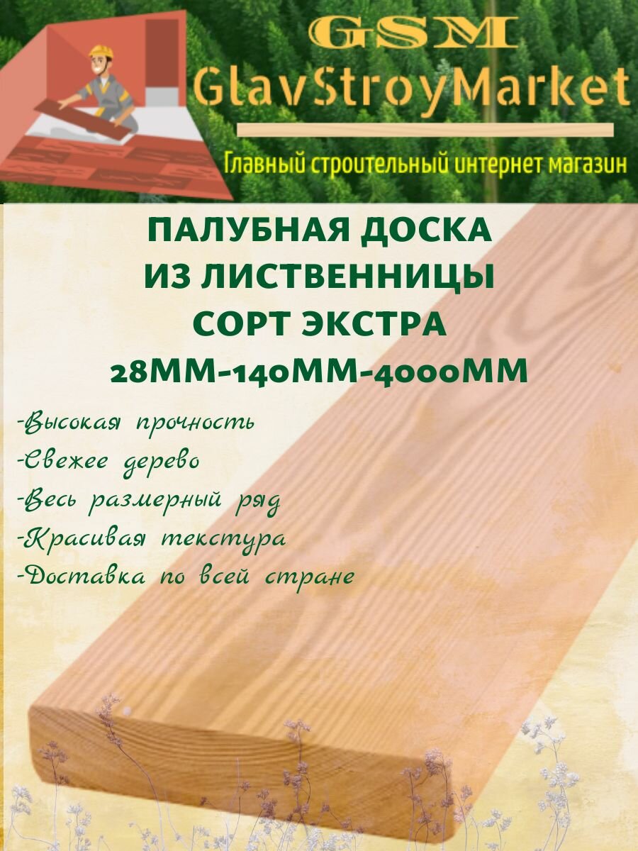 Палубная доска из лиственницы сорт экстра 28х140х4000мм 1шт информация: