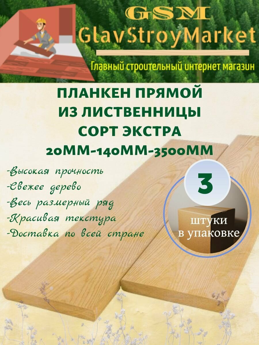 Планкен прямой из лиственницы сорт экстра 20х140х3500мм 3шт информация: