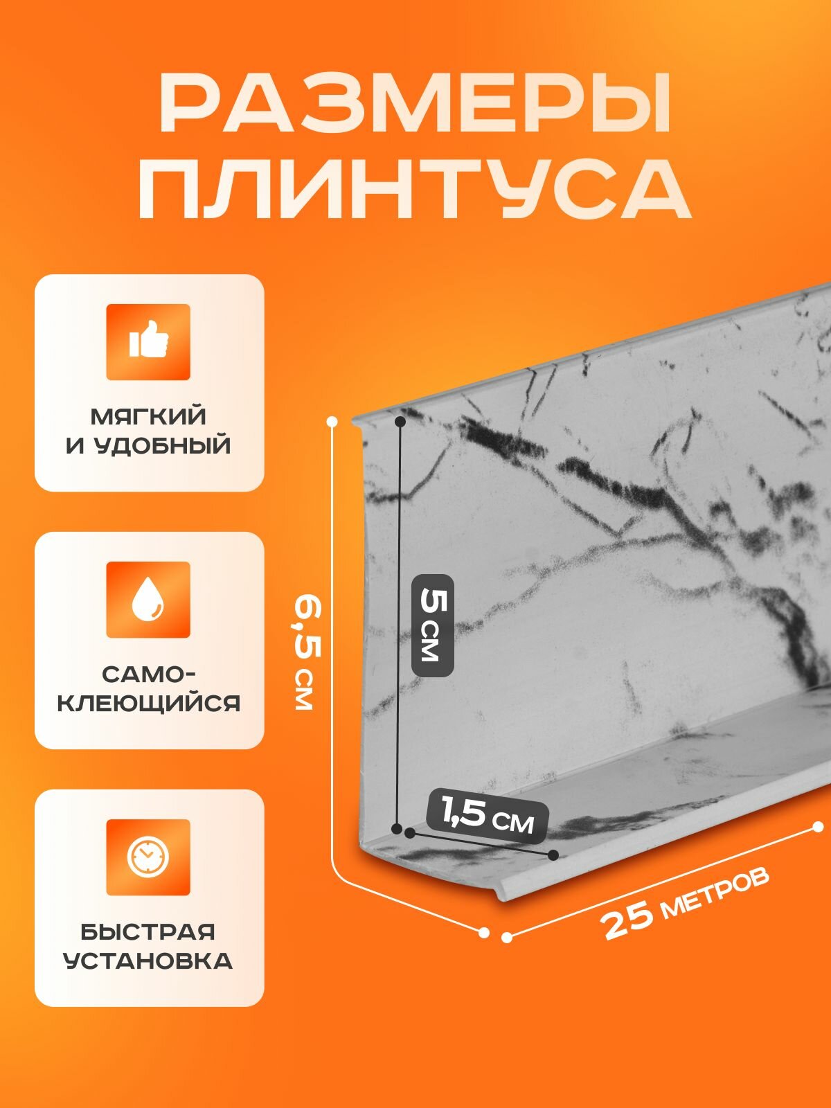 Отзывы на Плинтус гибкий напольный самоклеящийся, 65мм х 25м, светло-серый мрамор, гибкий плинтус для пола.