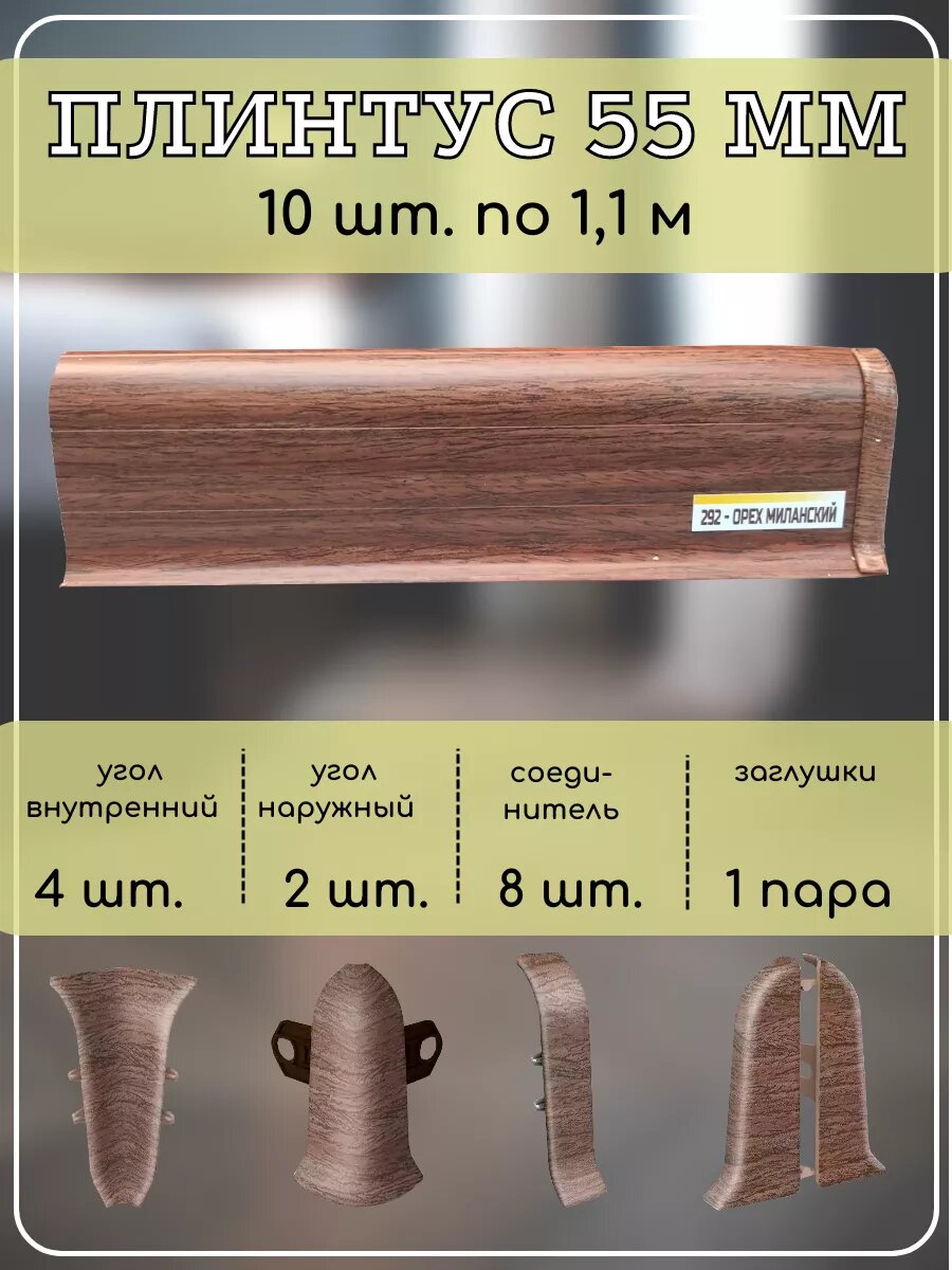 10 цен на Плинтус IDEAL, для пола, миланский орех, с кабель-каналом, 55х110, 10 шт. с фурнитурой