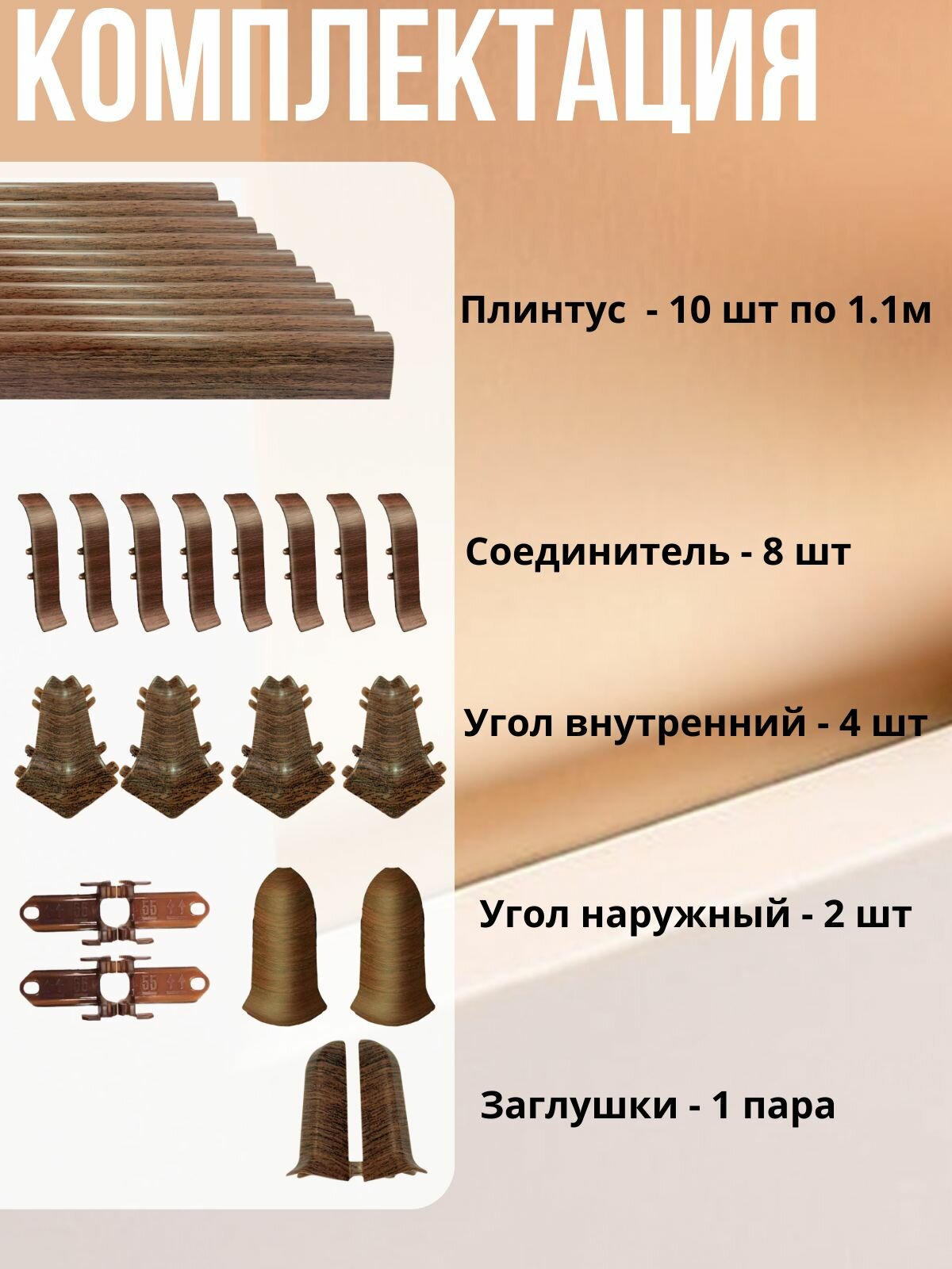 10 цен на Плинтус Ideal "Классик", с фурнитурой, влагостойкий, орех, 110 см x 5.5 см