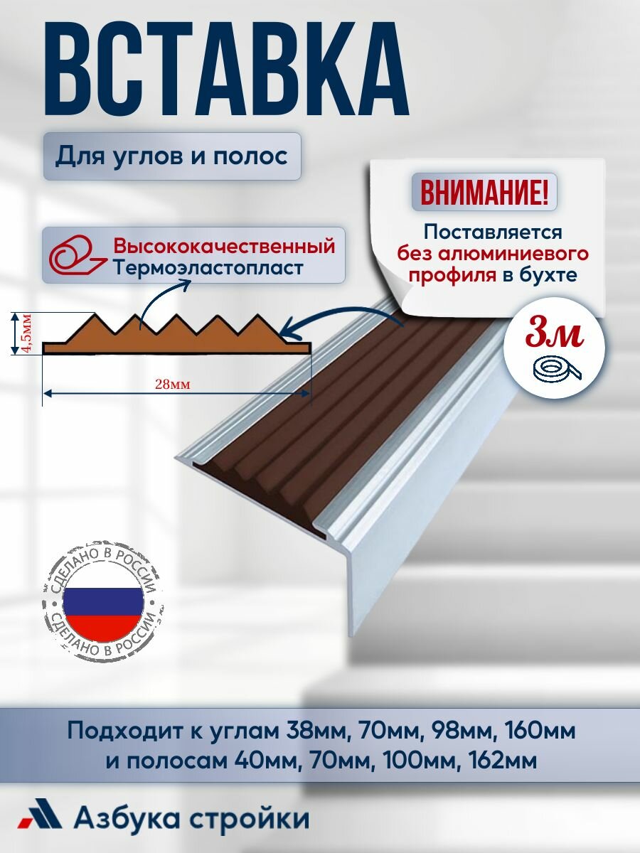 Вставка 28мм*4,5мм в алюминиевый угол-порог и алюминиевую полосу 3м, темно-коричневый информация: