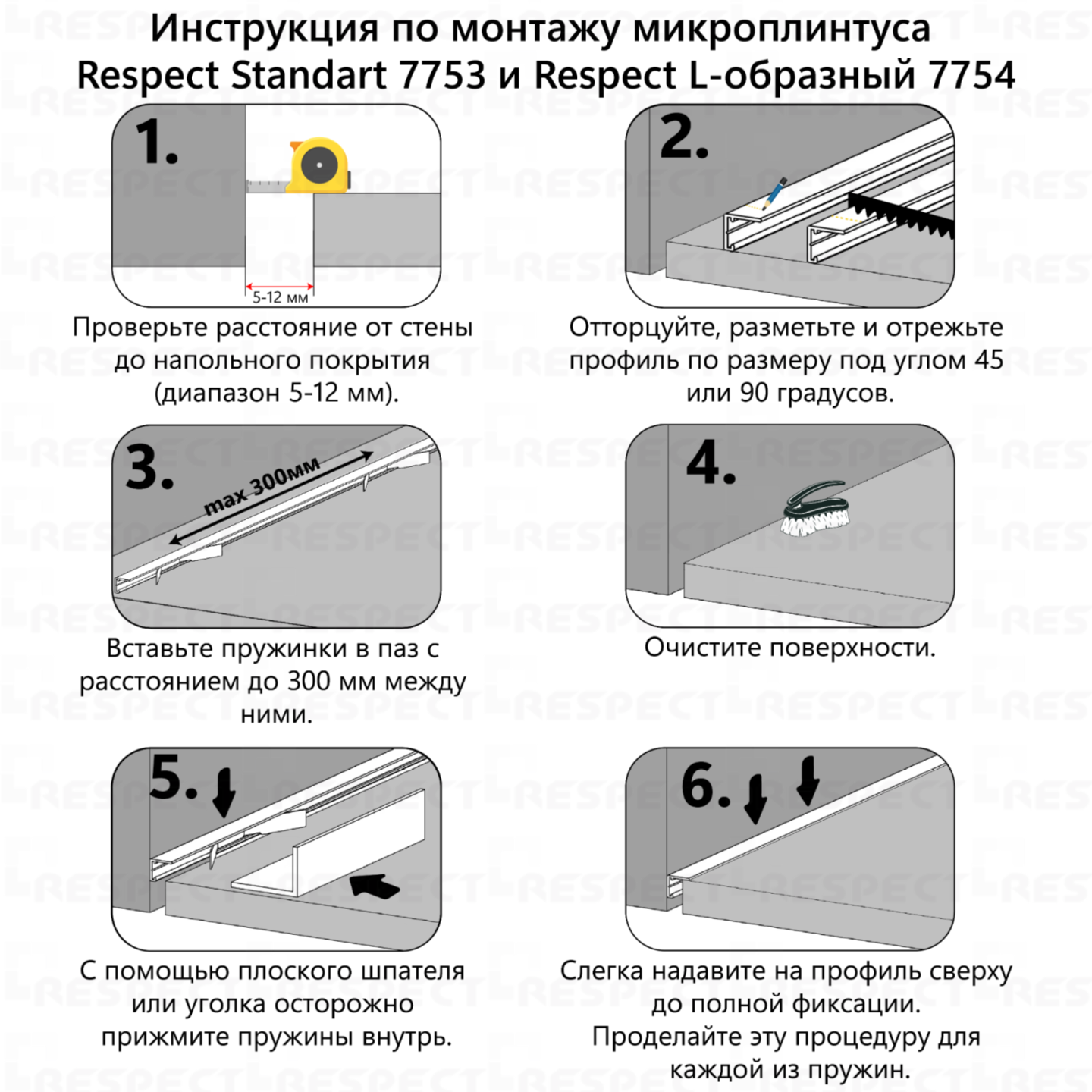 Плинтус напольный щелевой для пола L-образный 2 метра 10 шт, цвет белый матовый 12 993 ₽